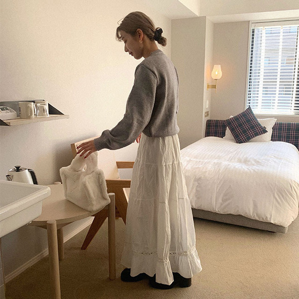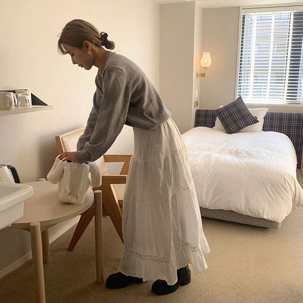 - Tips柔らかく薄手のコットン地を使ったロングスカート。