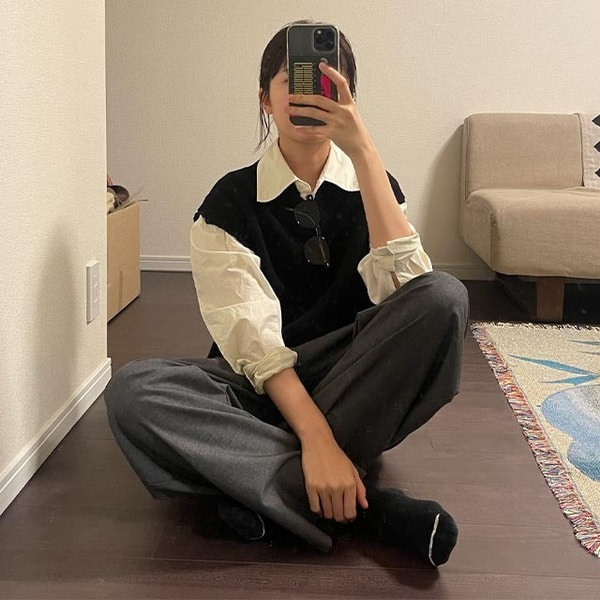 - 素材 : (woven) wool 10% + rayon 30% + polyurethane 5% + polyester 50%