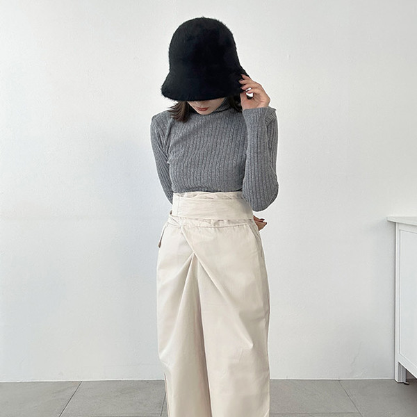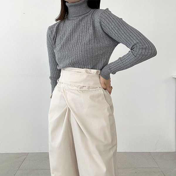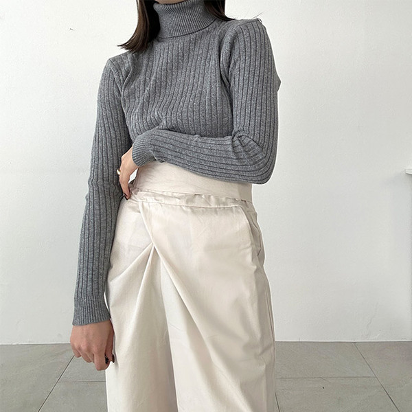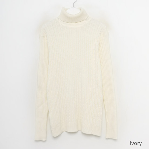 ケーブルタートルニット