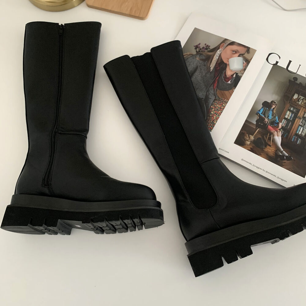 [5cm]楽ちんチェルシー厚底ロングブーツ
