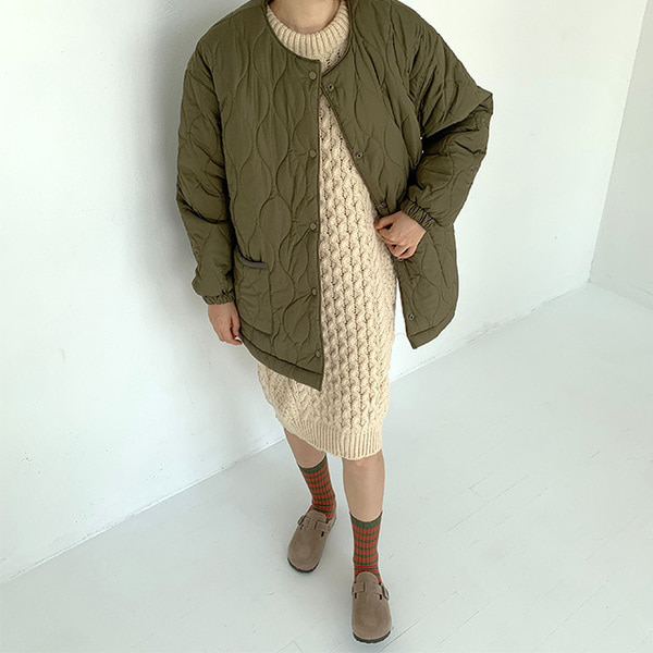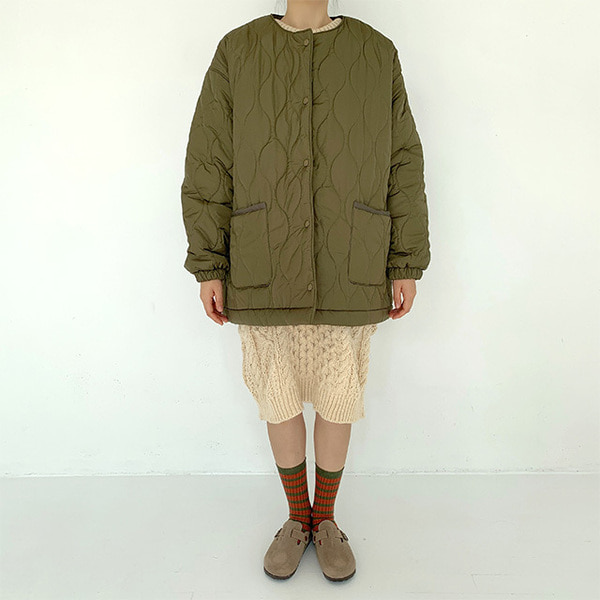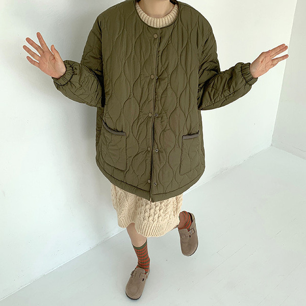 ノーカラーキルティングジャケット
