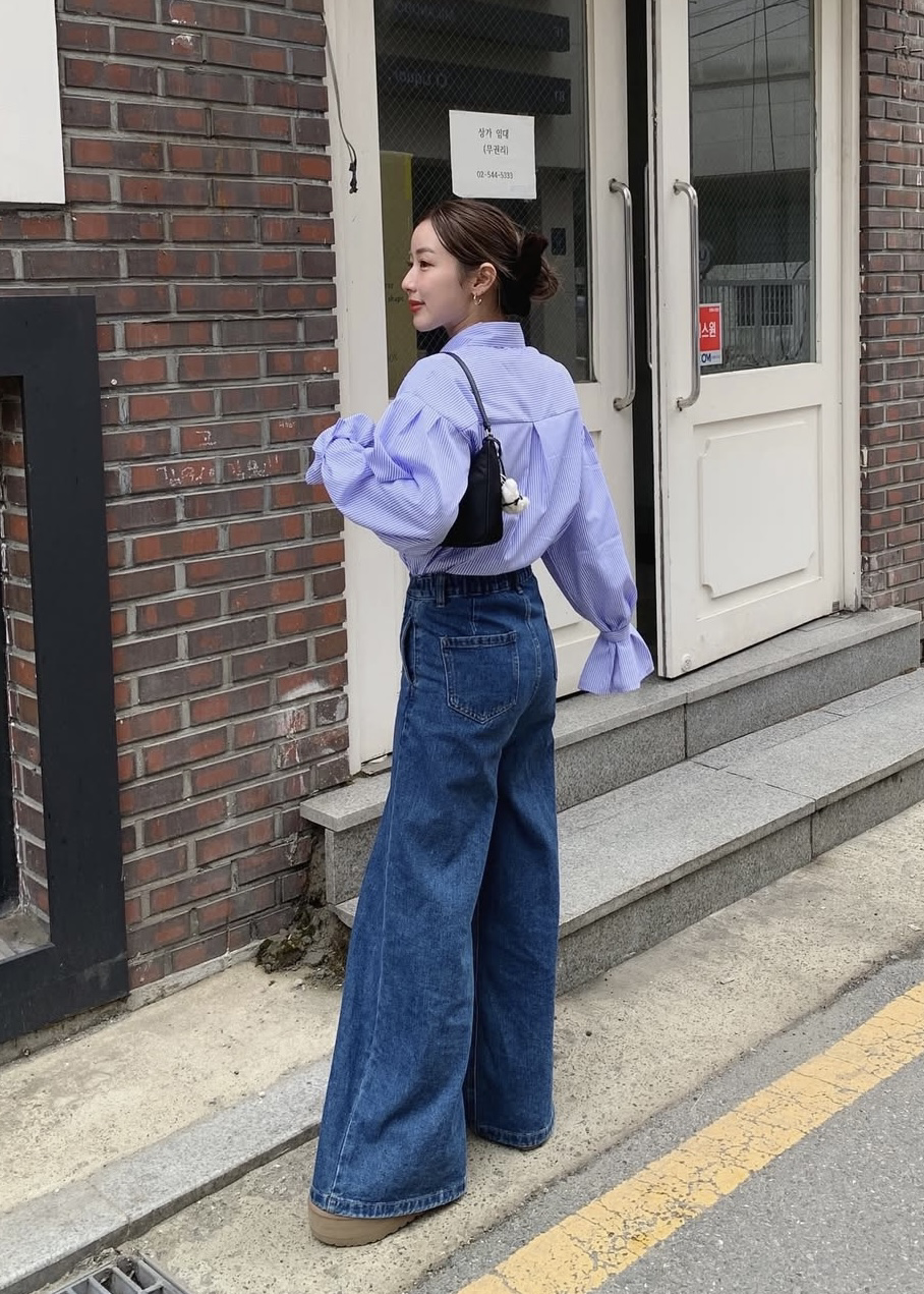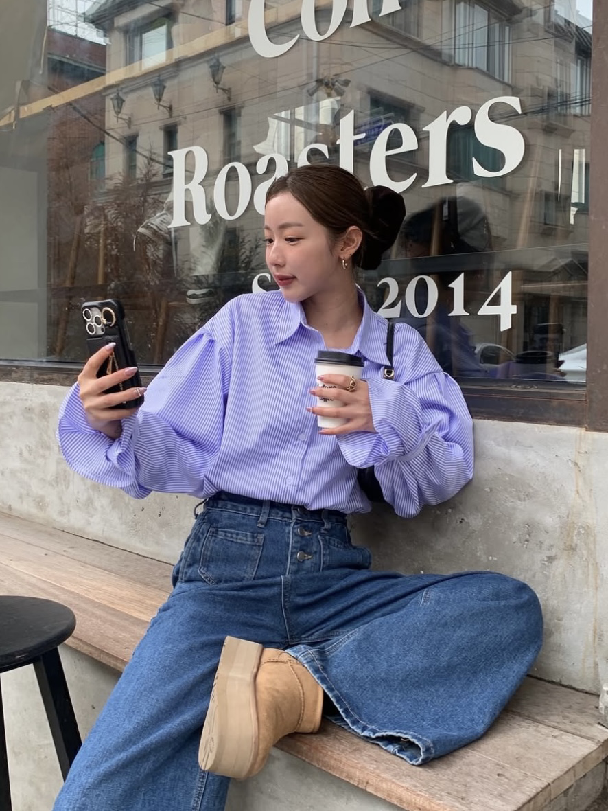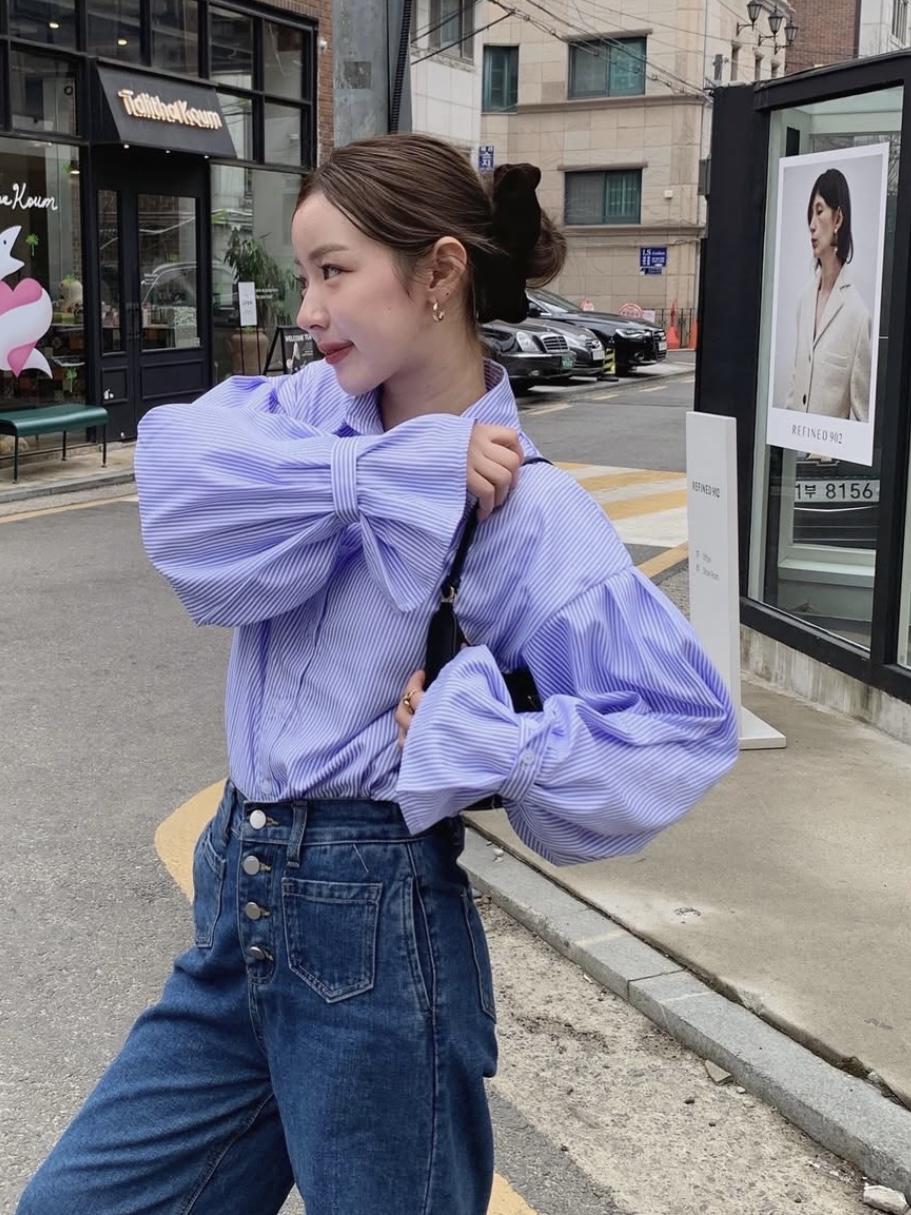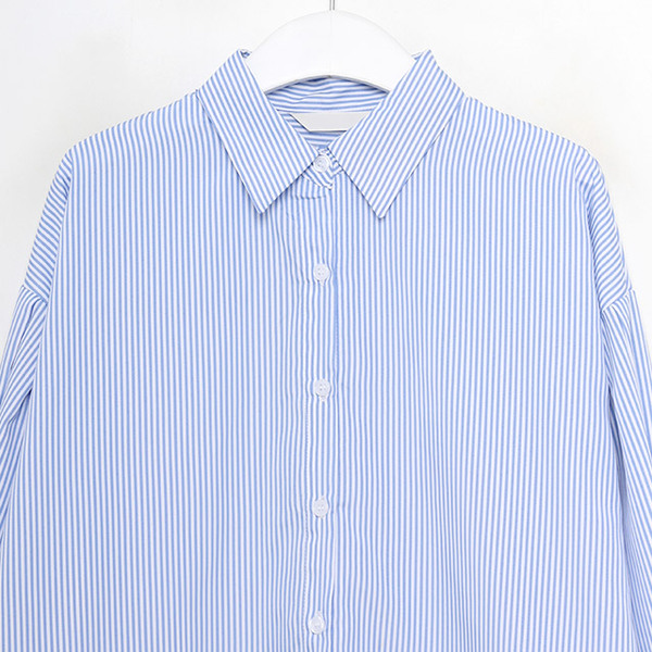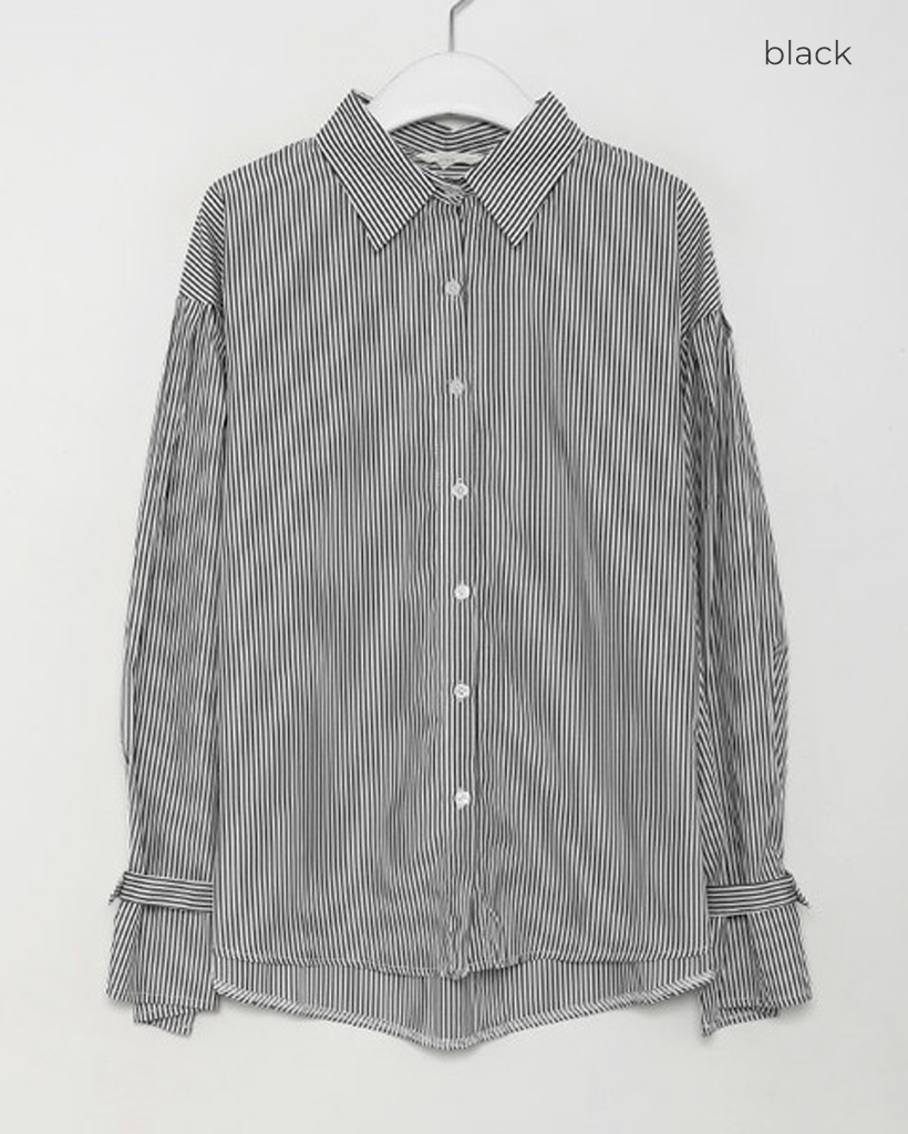 スリーブボタンストライプシャツ