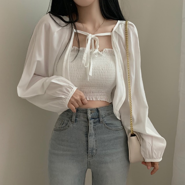 Women's/[set] シフォンリボンクロップボレロカーディガン+ビスチェセット