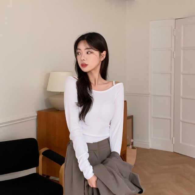 Women's/肩ストラップ付きオフショルダーTシャツ