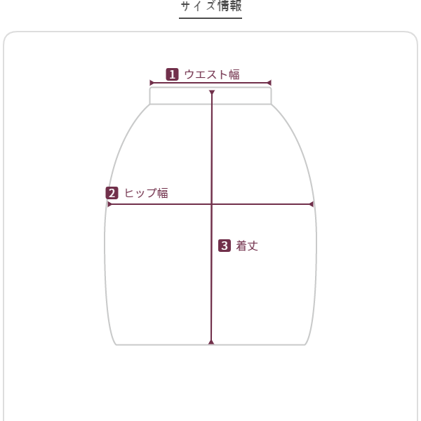 2 ヒップ幅 | 44 17.5 | 46 18 | 48 19 |