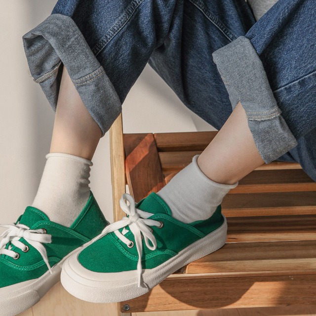 Anpib 2Wayバブーシュスニーカー誰でも、どこでも、履きやすいデイリースニーカー踵部分を踏んで、ミュールタイプとしても履ける、2Wayスニーカー。
