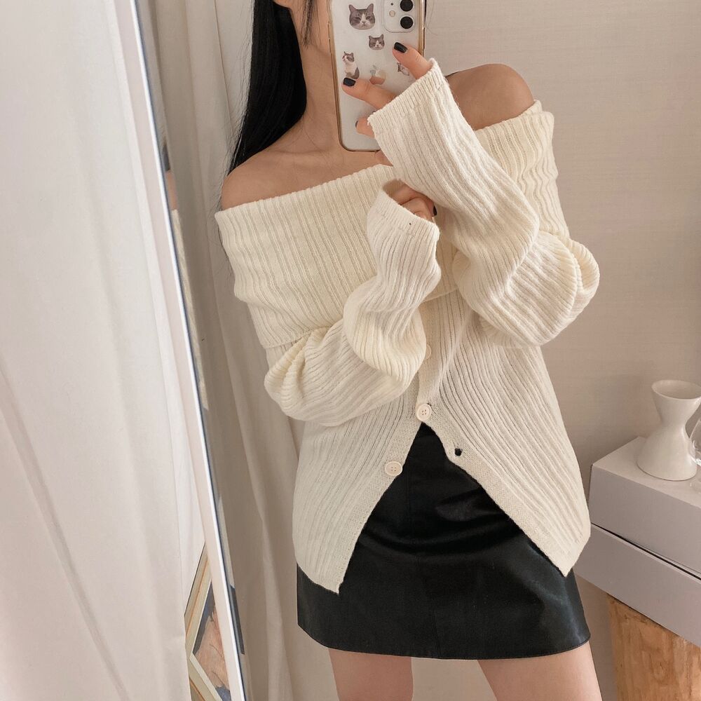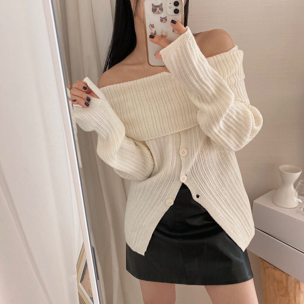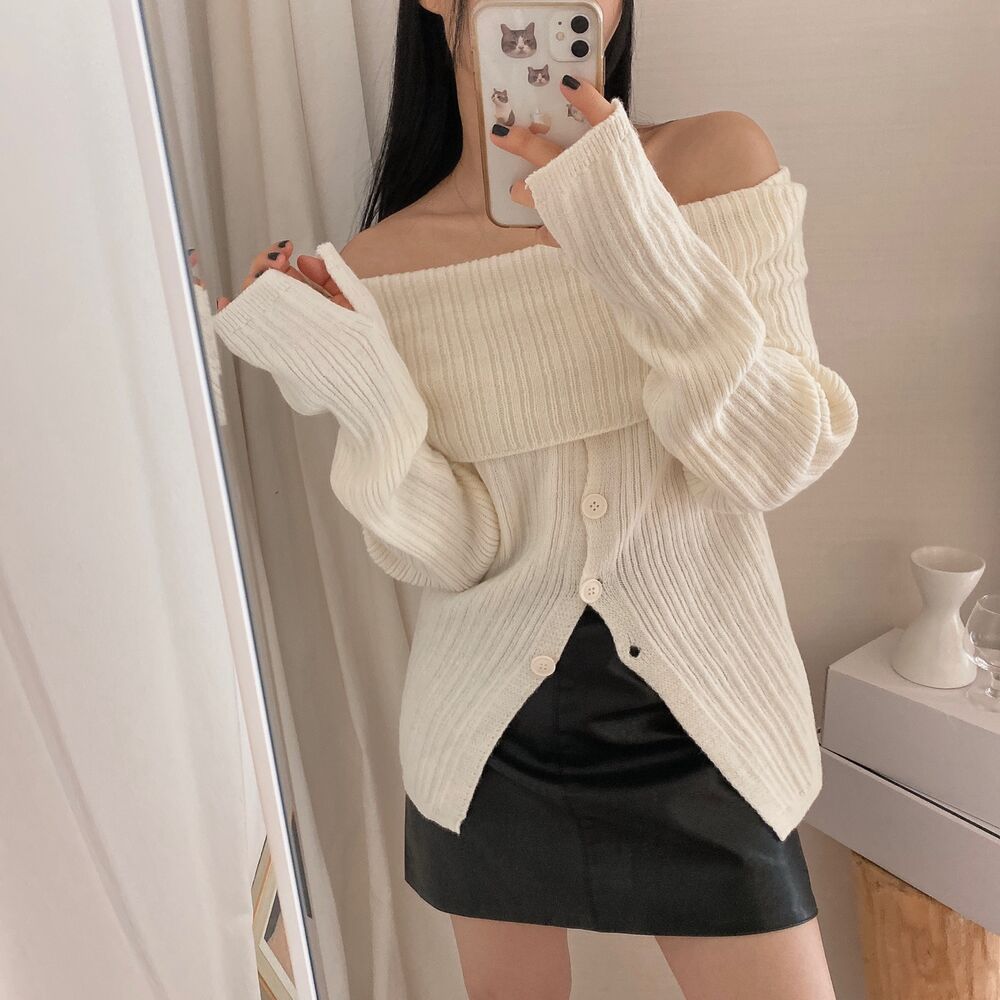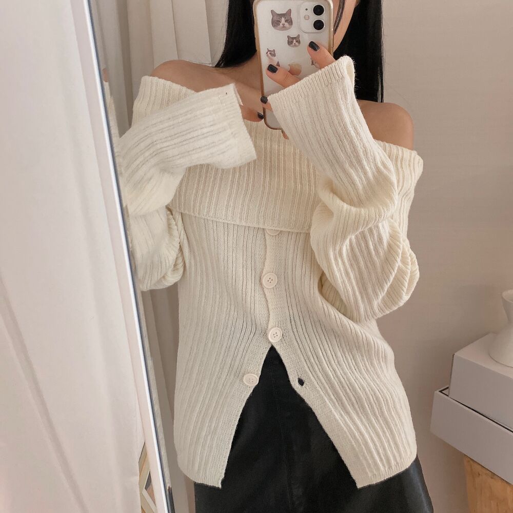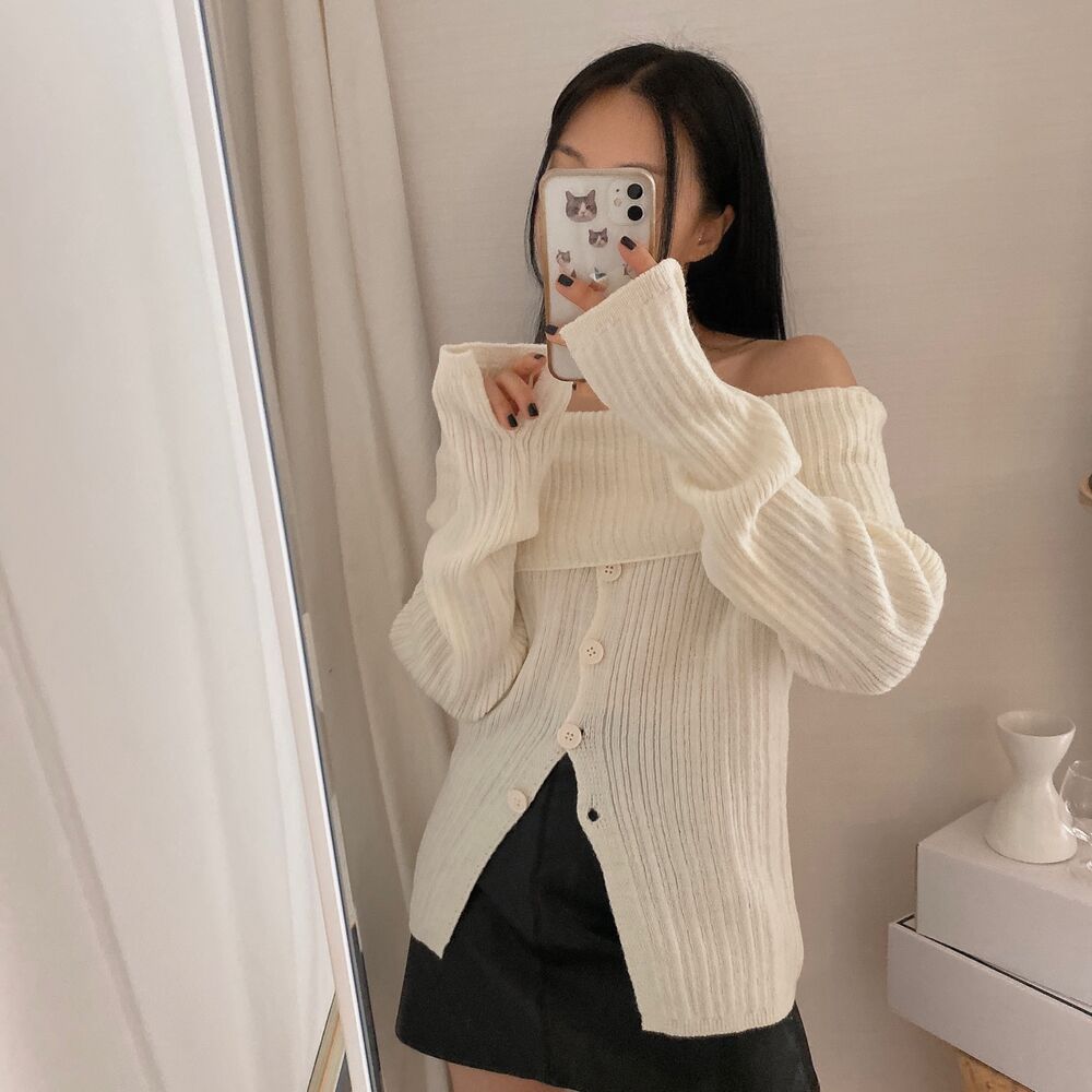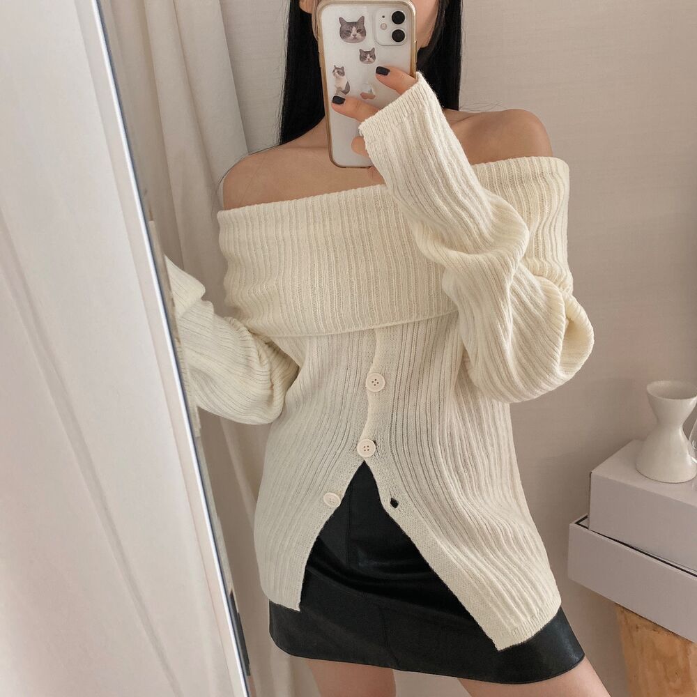 Women's/オフショルダー ボタン オープン ハイプ ニット