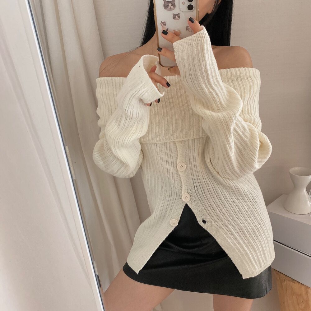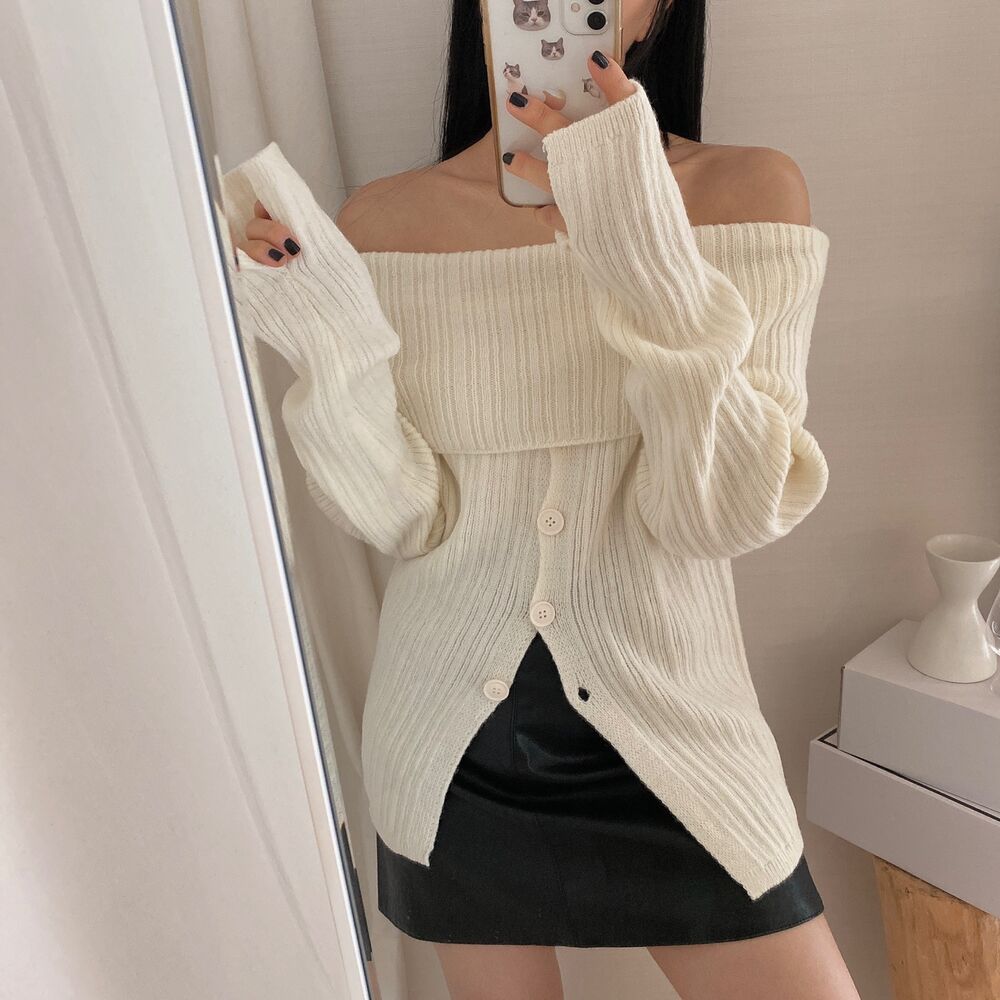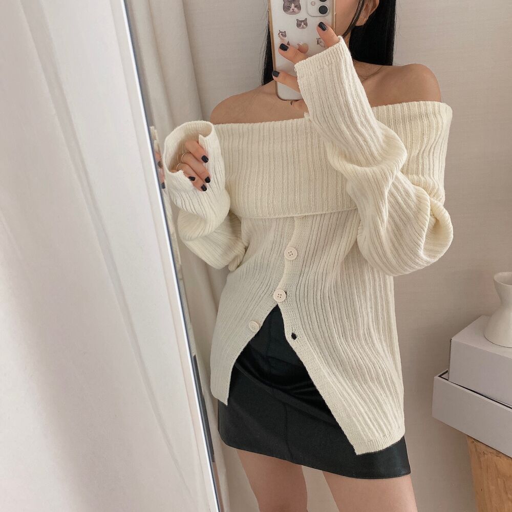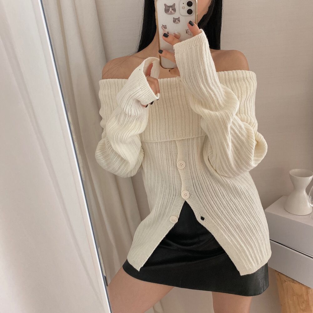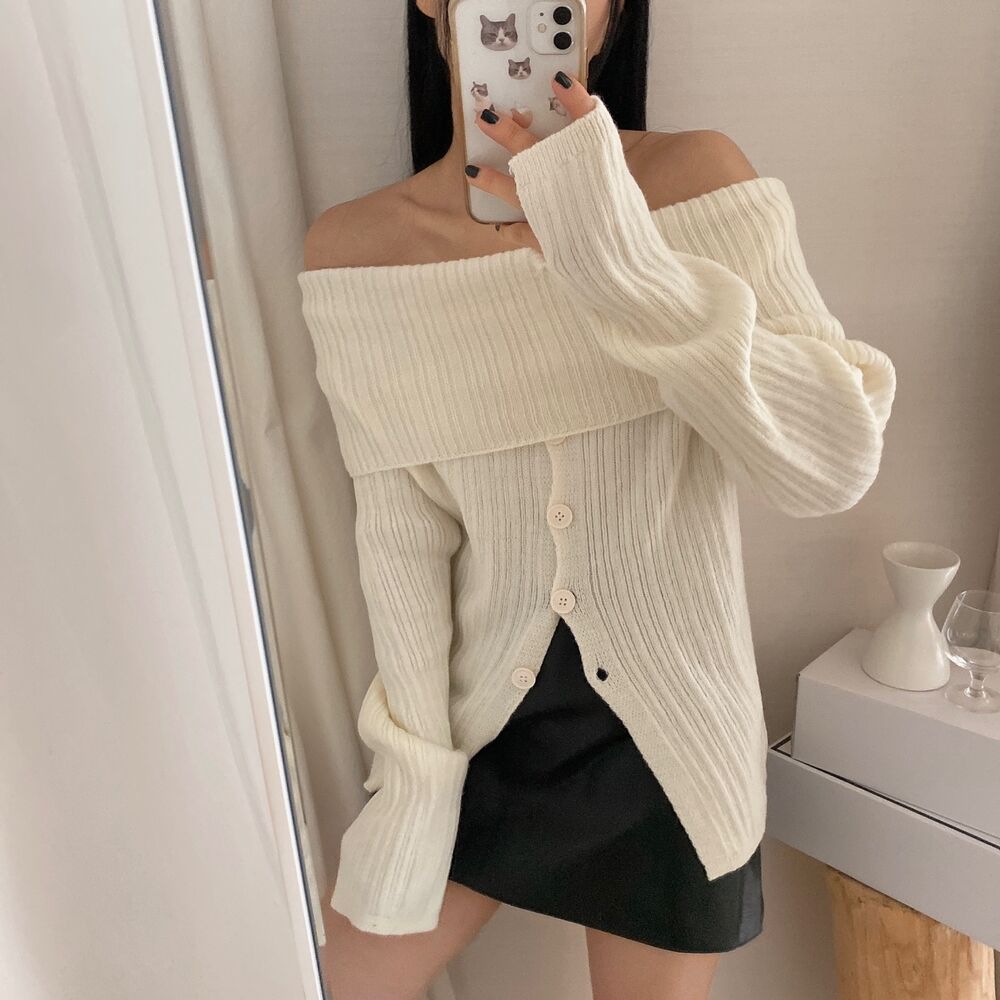 Women's/オフショルダー ボタン オープン ハイプ ニット