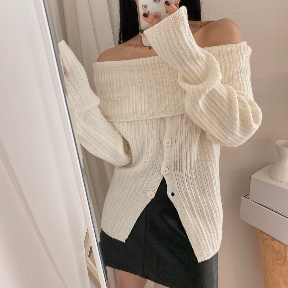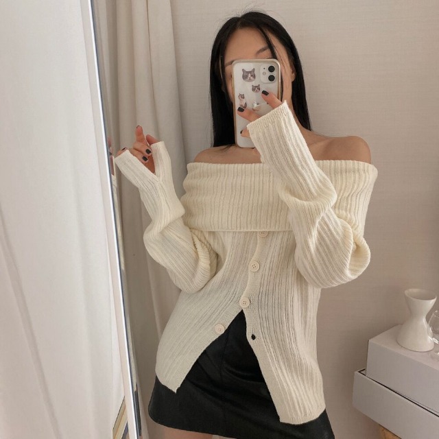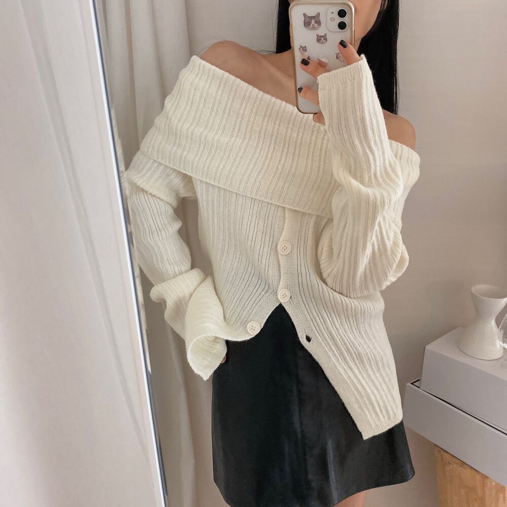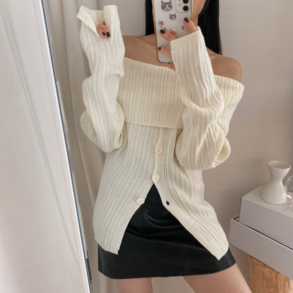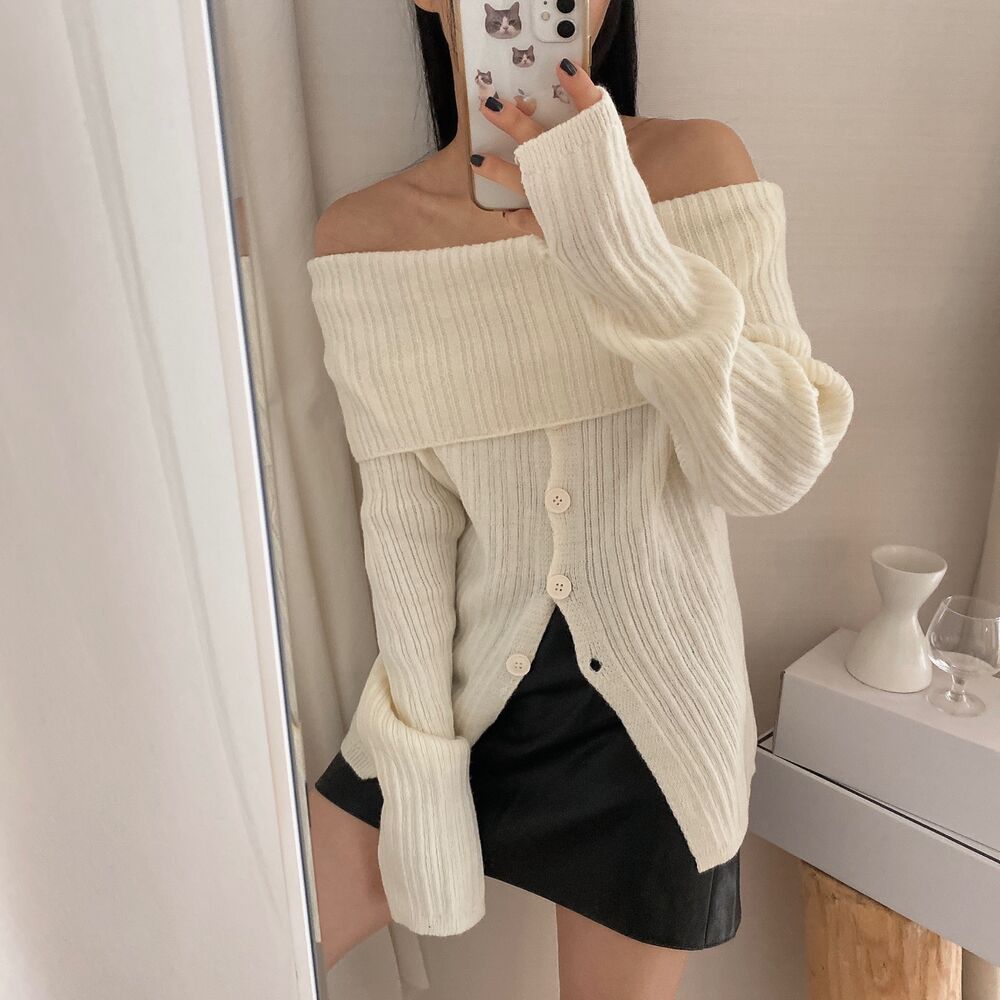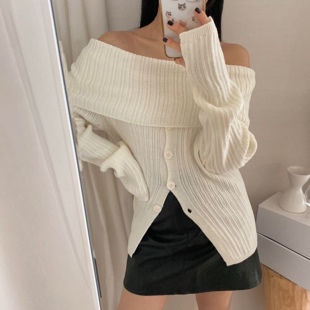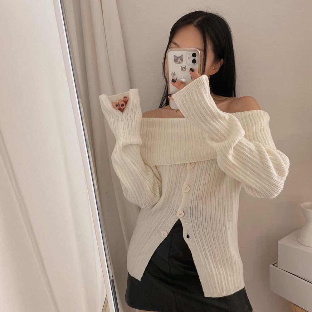 Women's/オフショルダー ボタン オープン ハイプ ニット