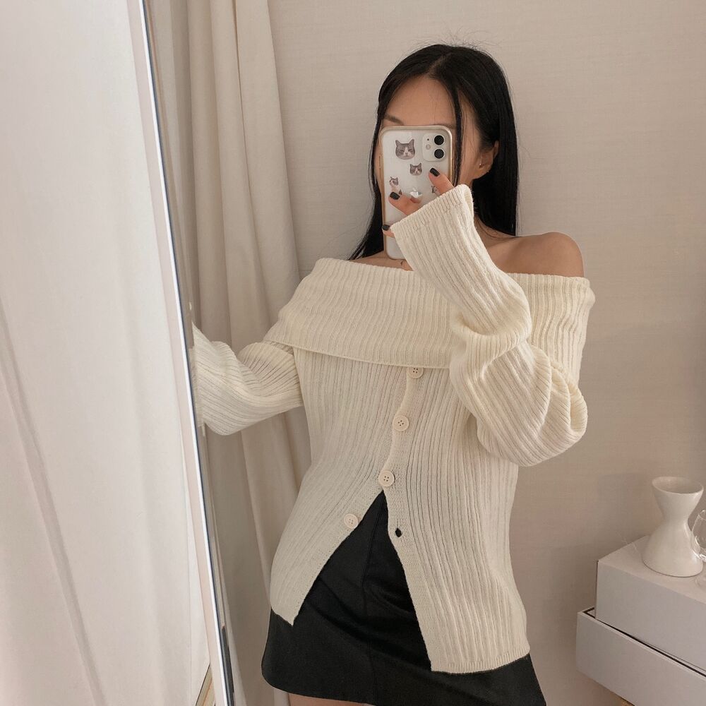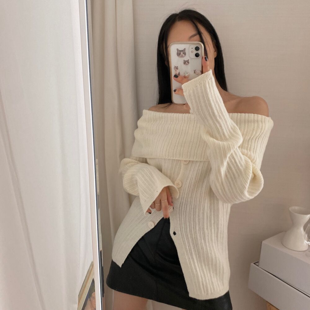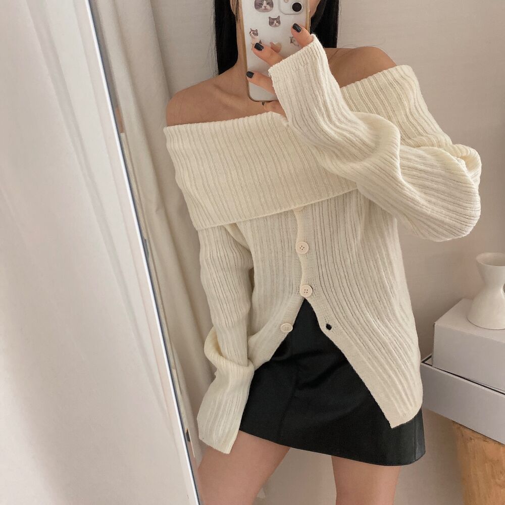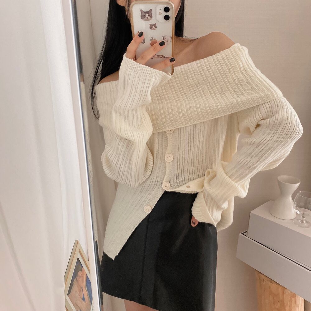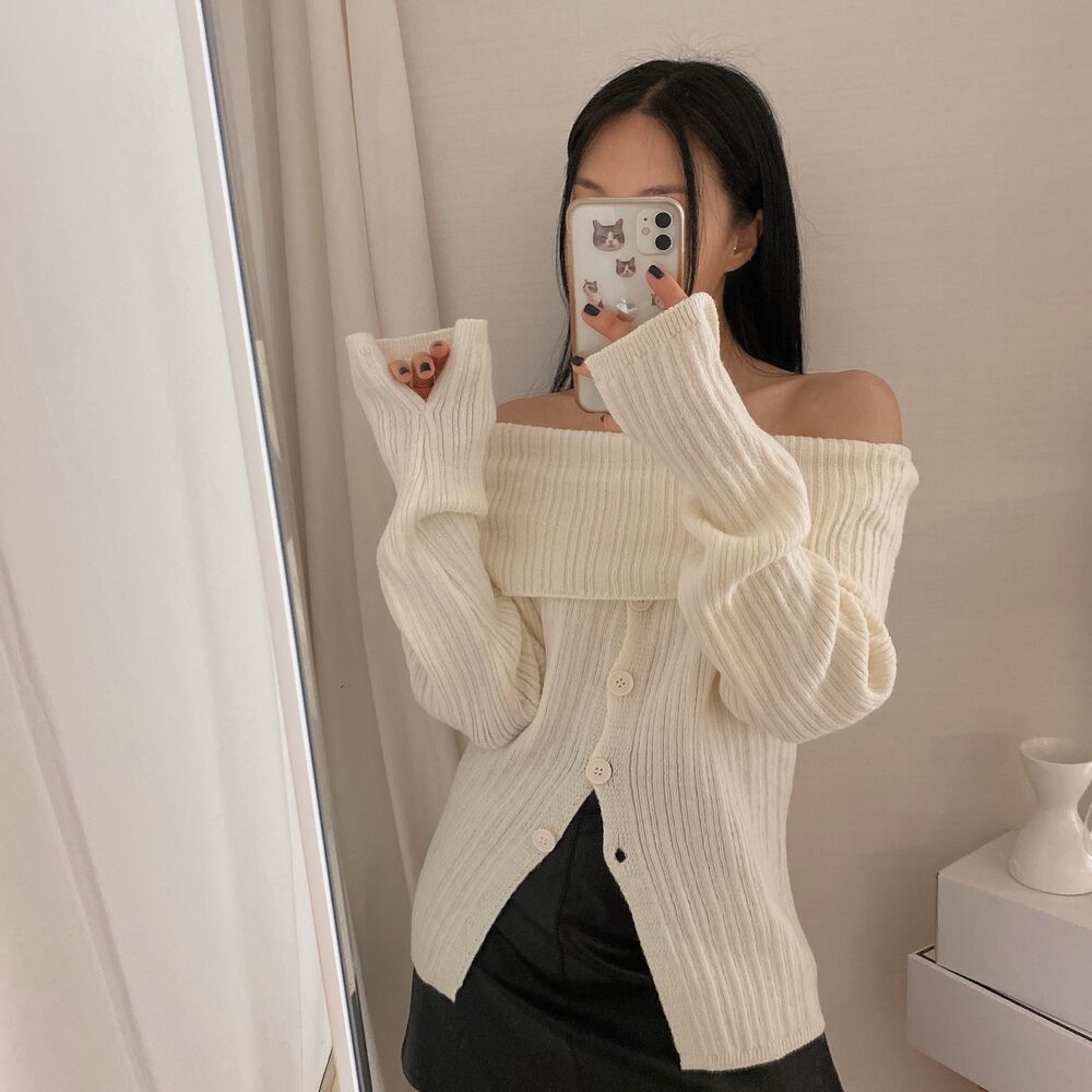 Women's/オフショルダー ボタン オープン ハイプ ニット