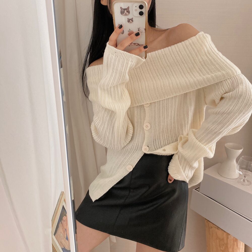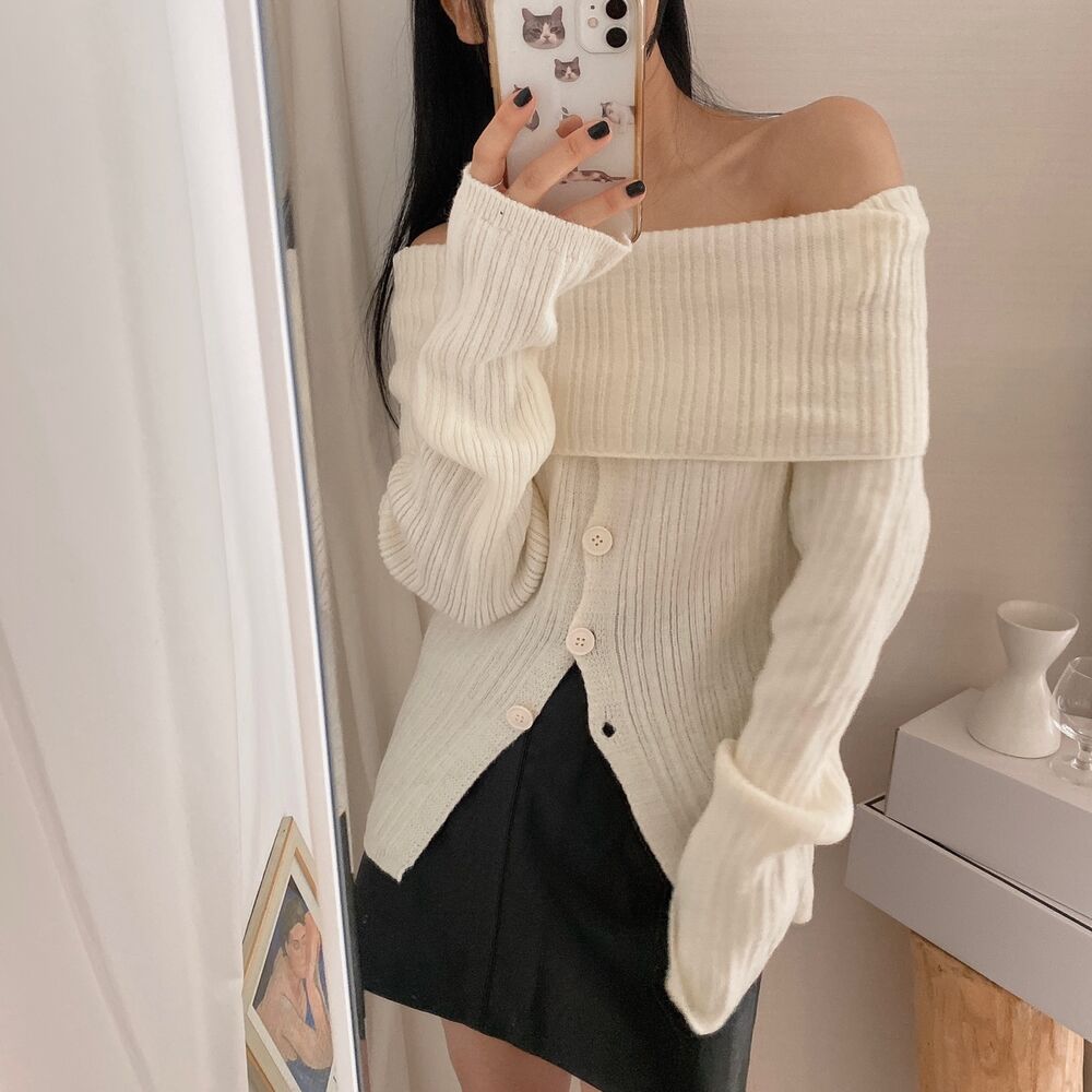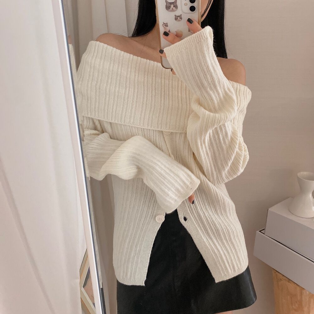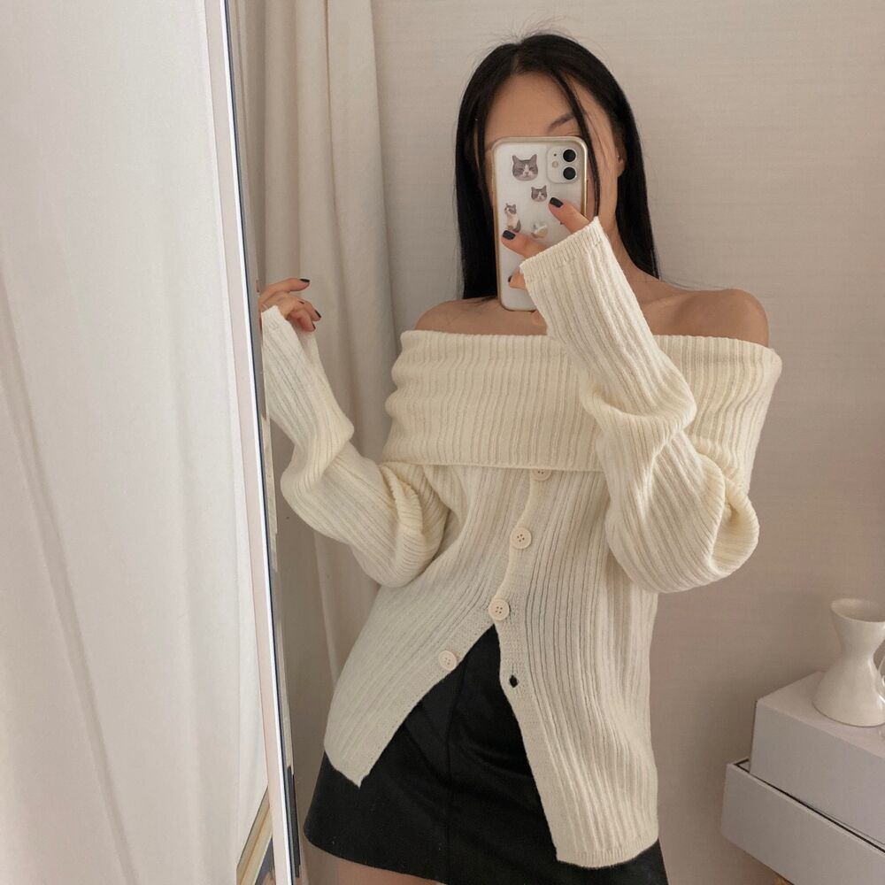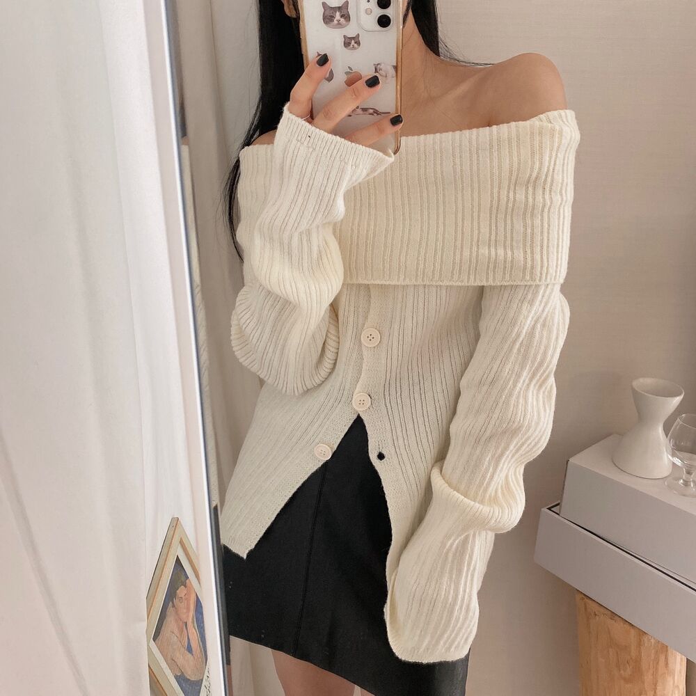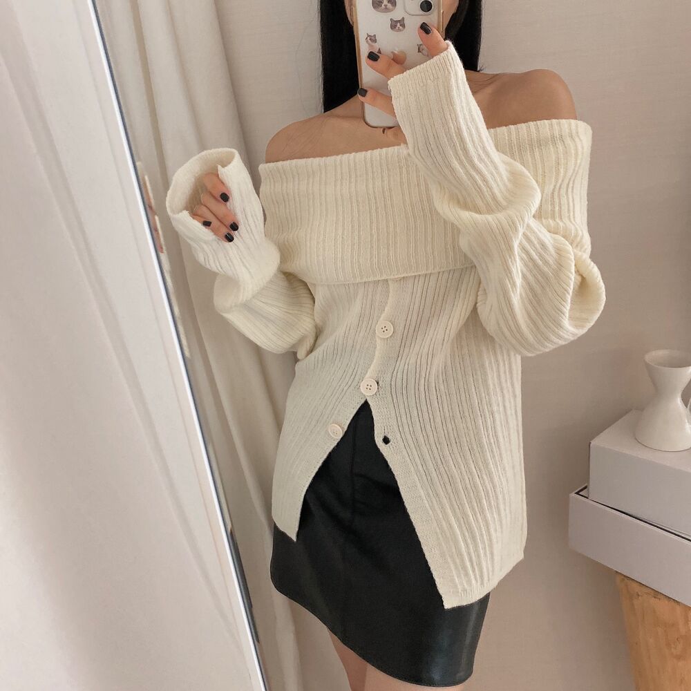 Women's/オフショルダー ボタン オープン ハイプ ニット