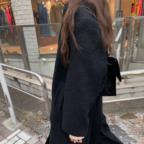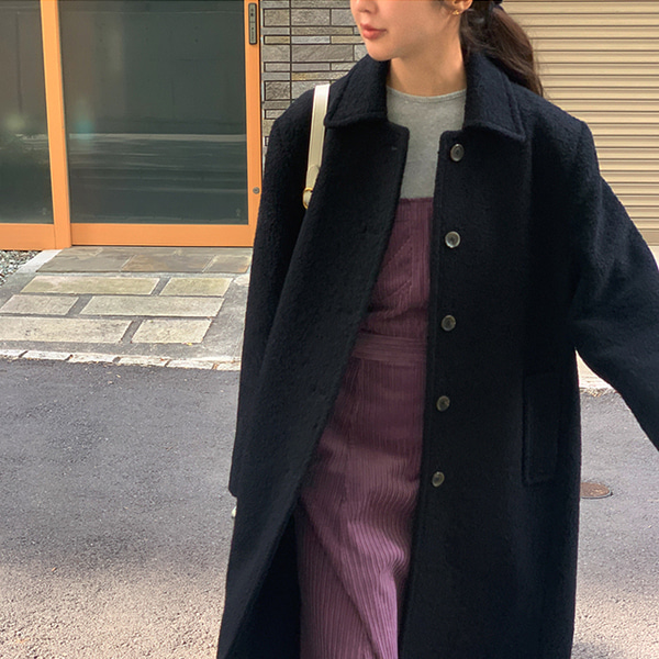 [Dearest] ステンカラーフロントボタンコート(ブラック)