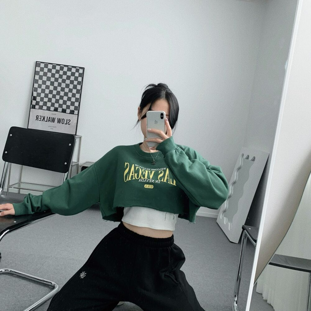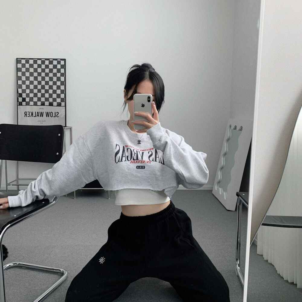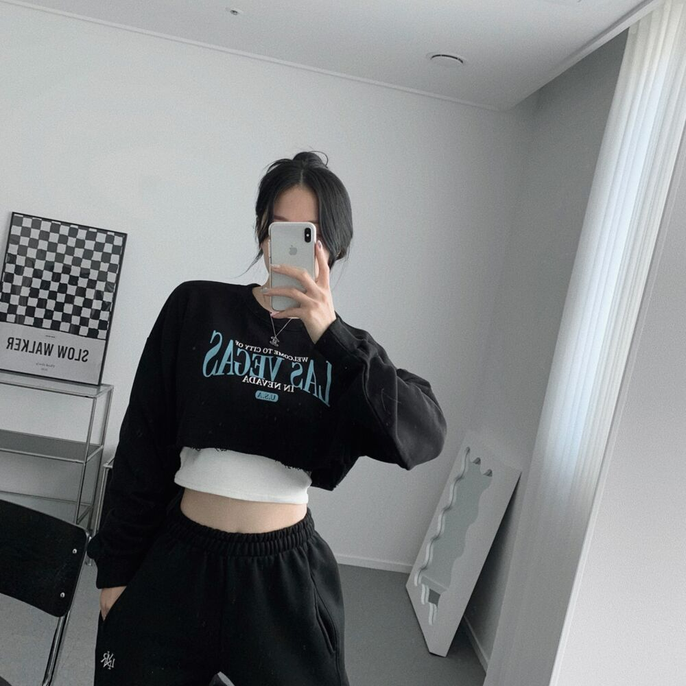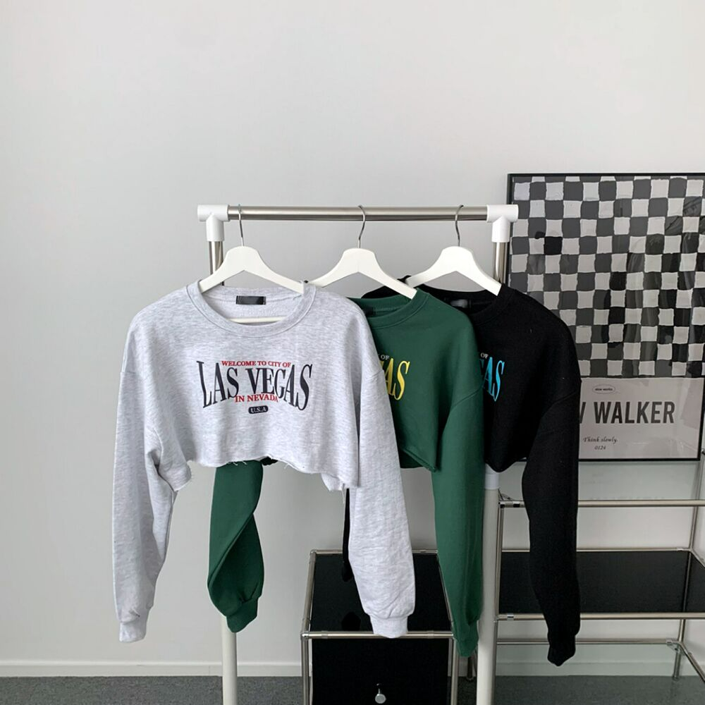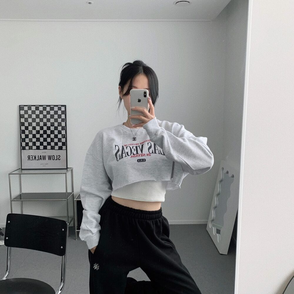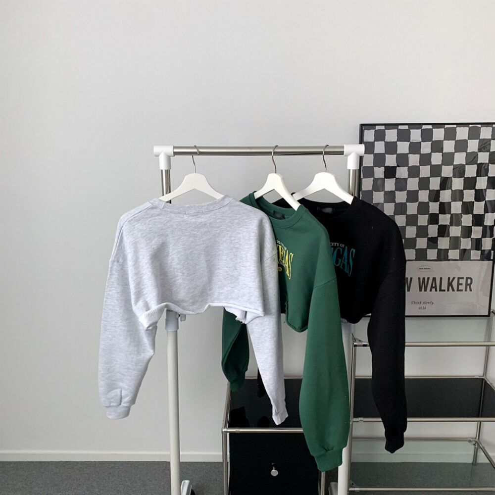 クロップレタリングアンダーブーブカッティングスウェット(3color)