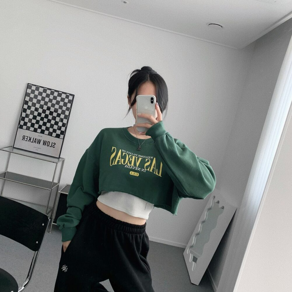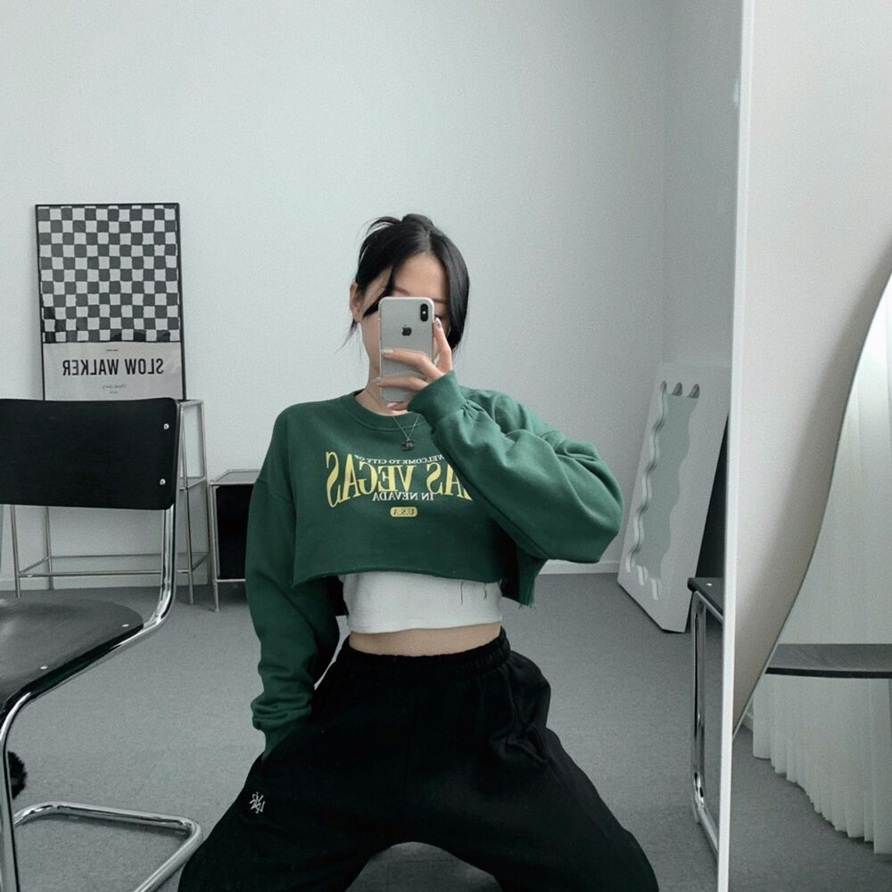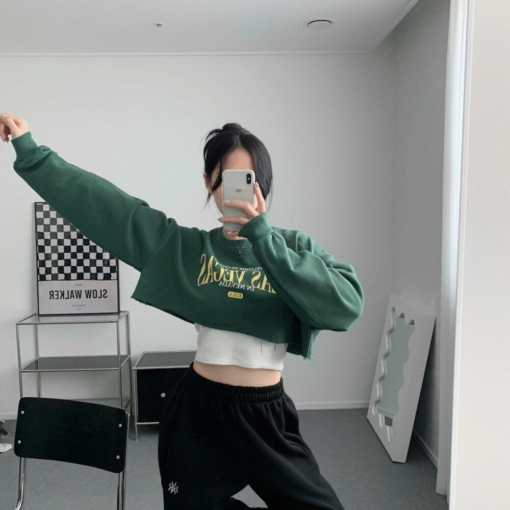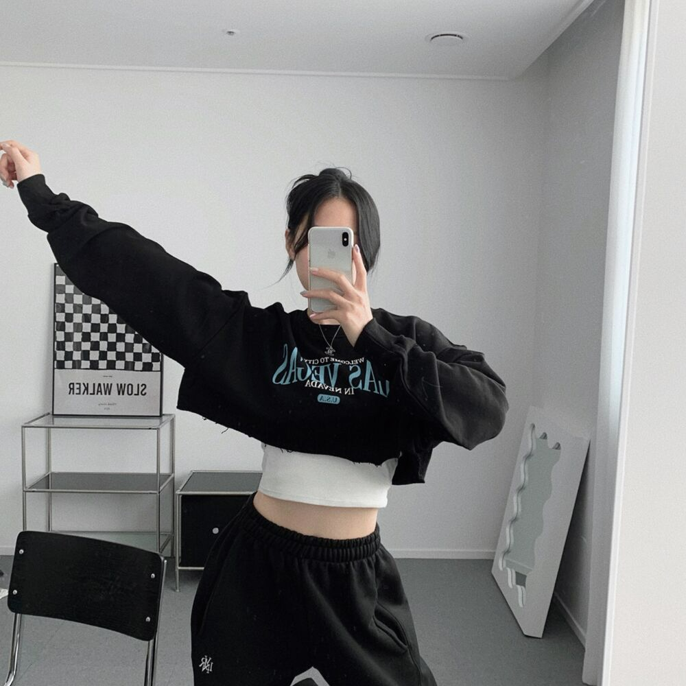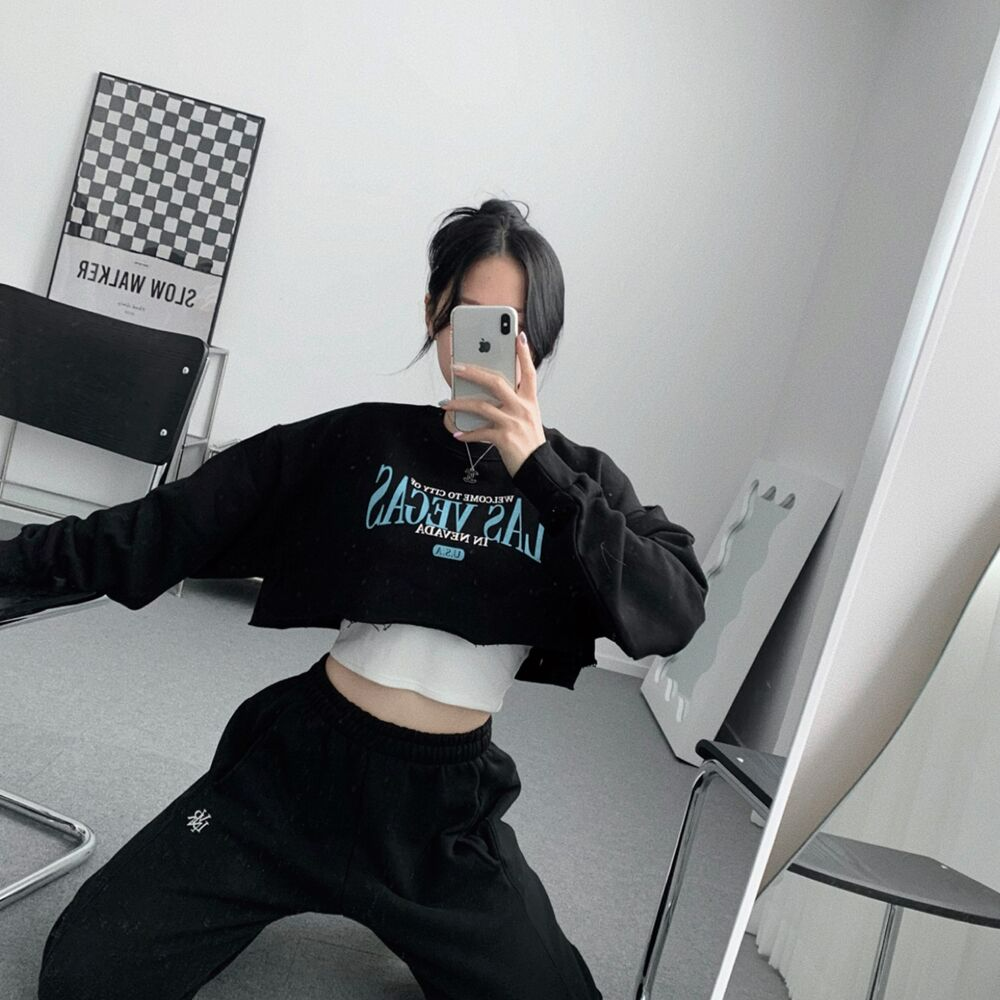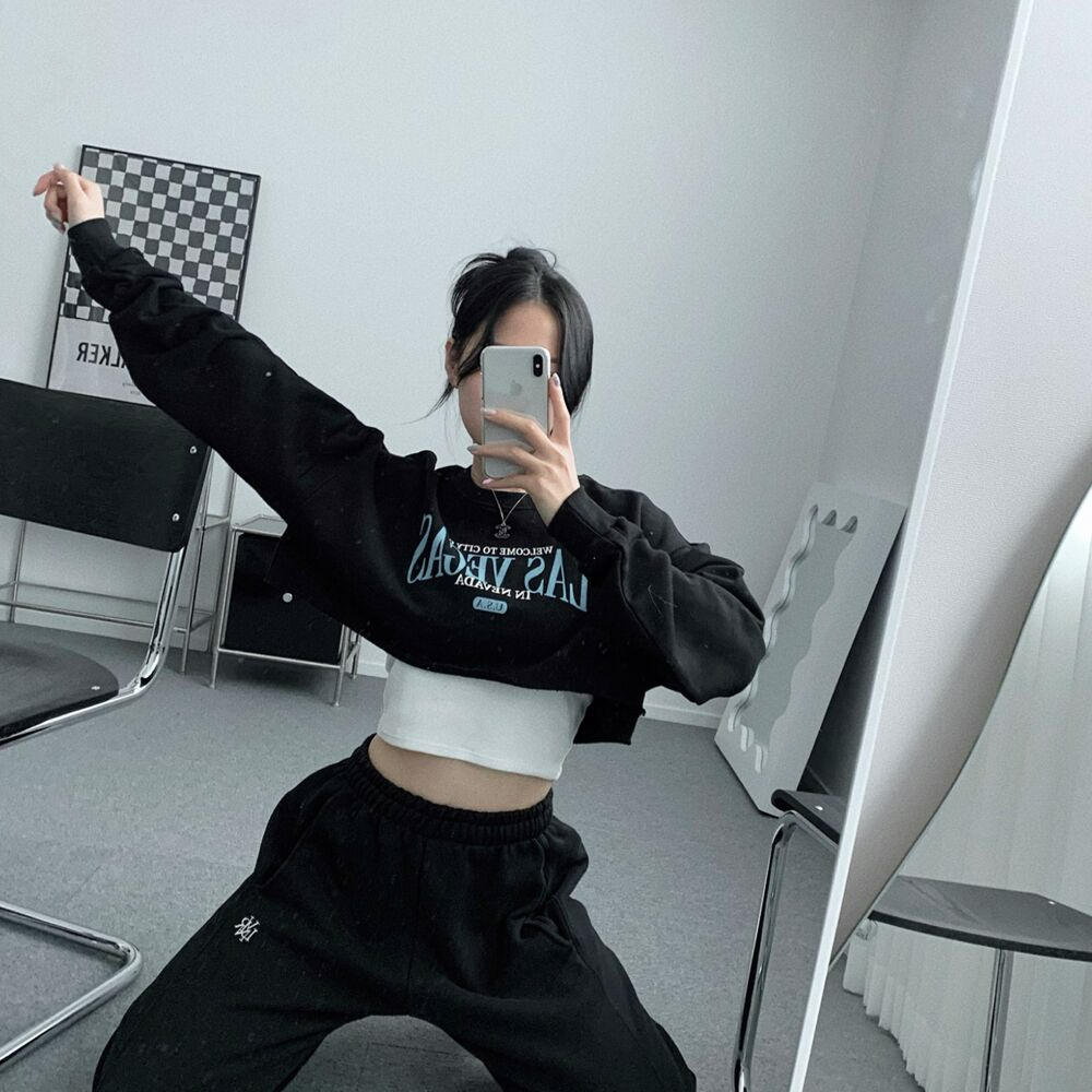 クロップレタリングアンダーブーブカッティングスウェット(3color)