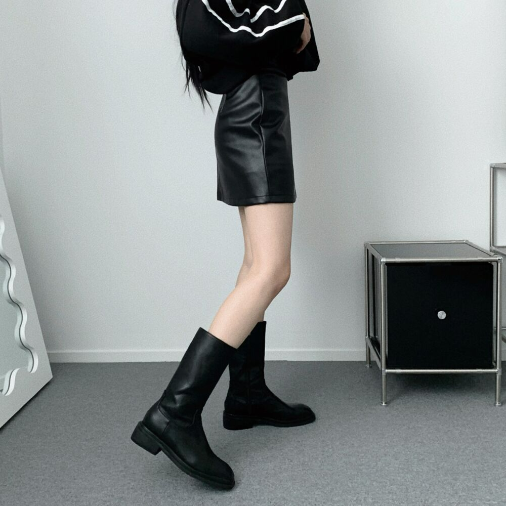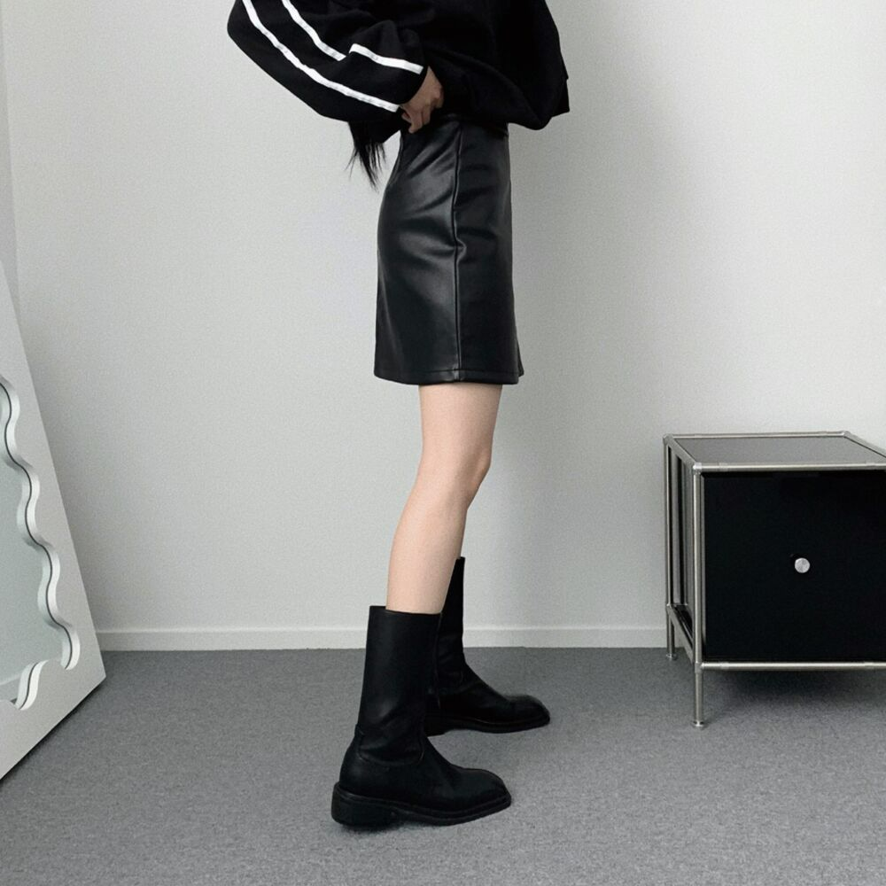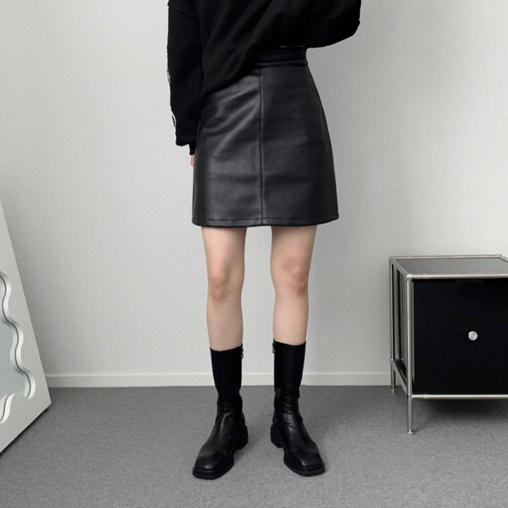 冬用レザーハイウエストAラインスカート