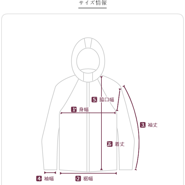 6 着丈 | 61 24 | 68 27 | 75 29.5 |