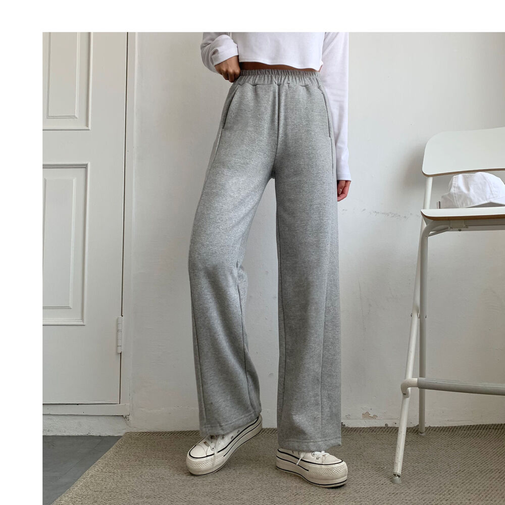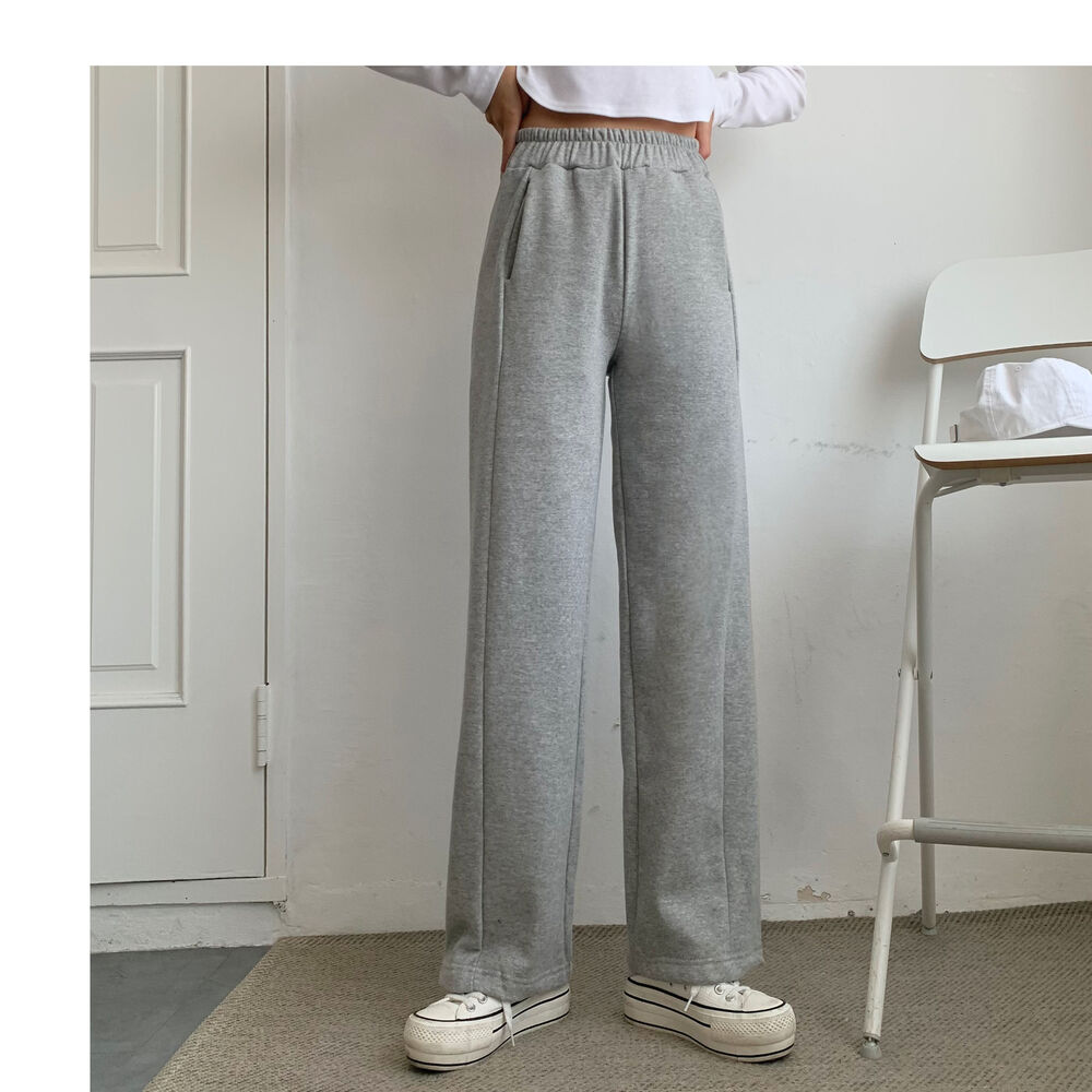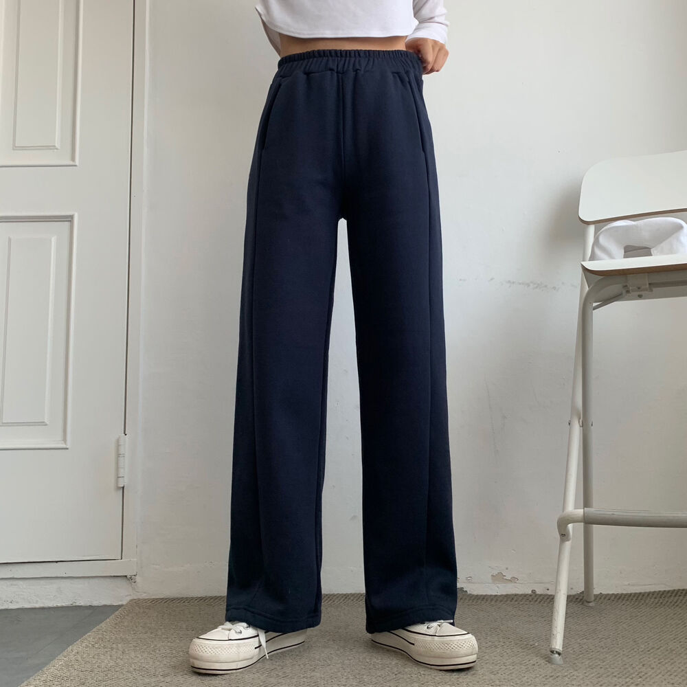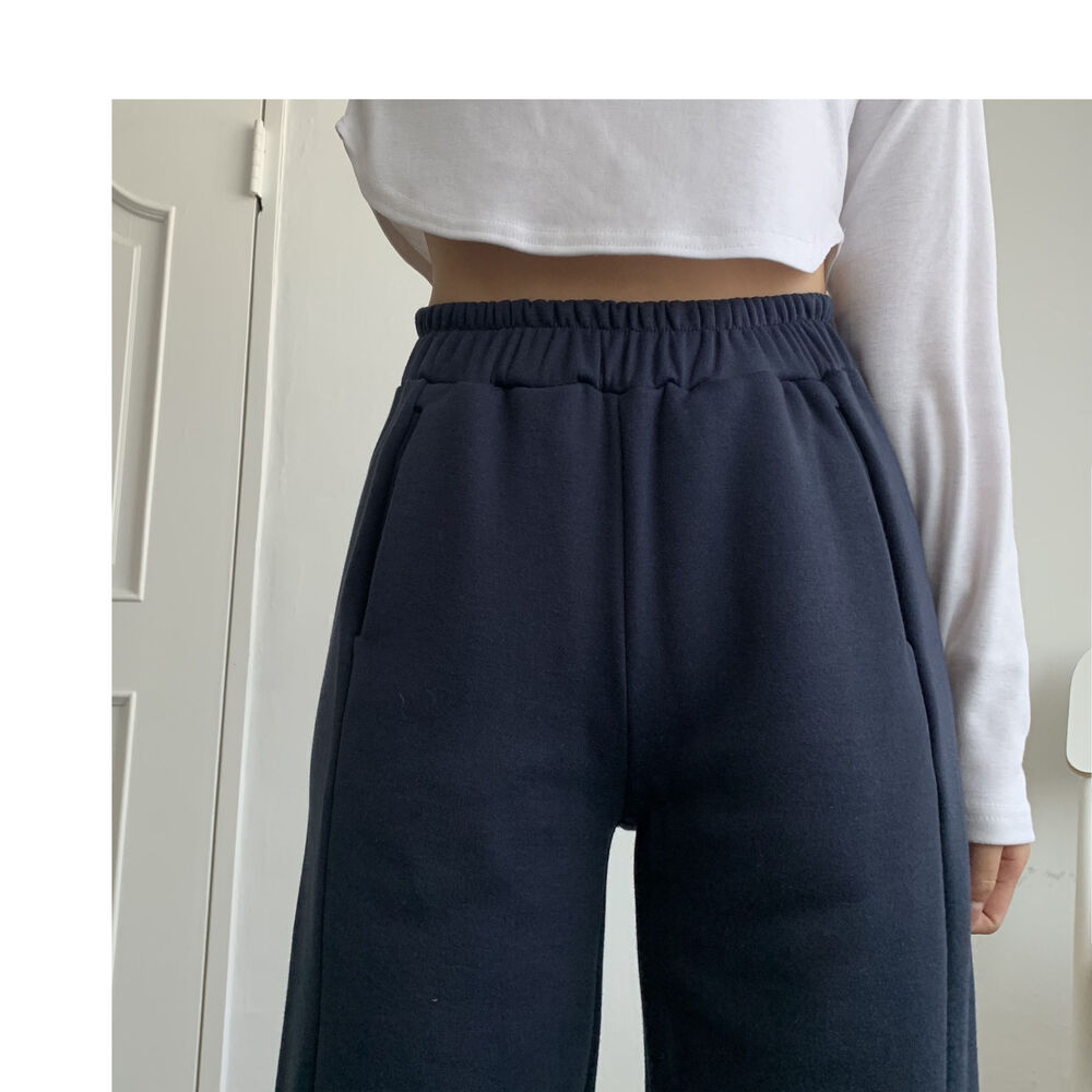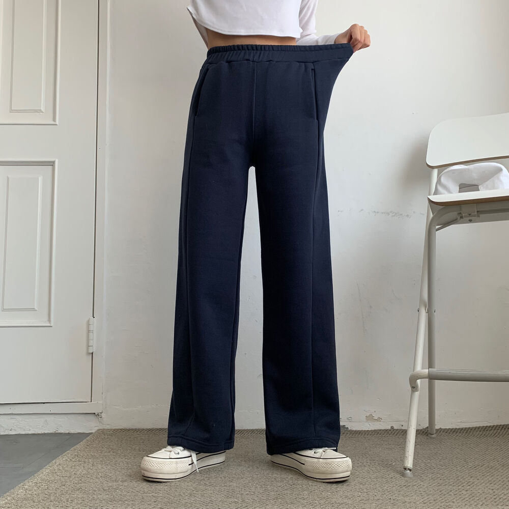 [起毛]ハイウエストワイドストレートバンディングトレーニングパンツ