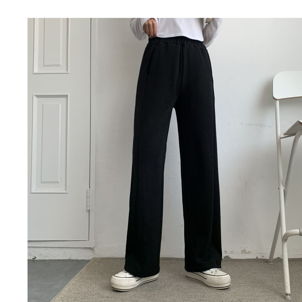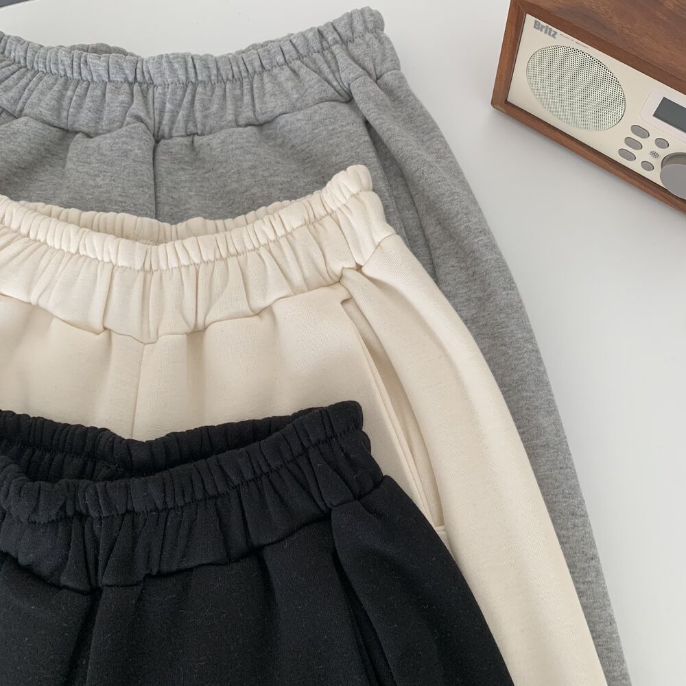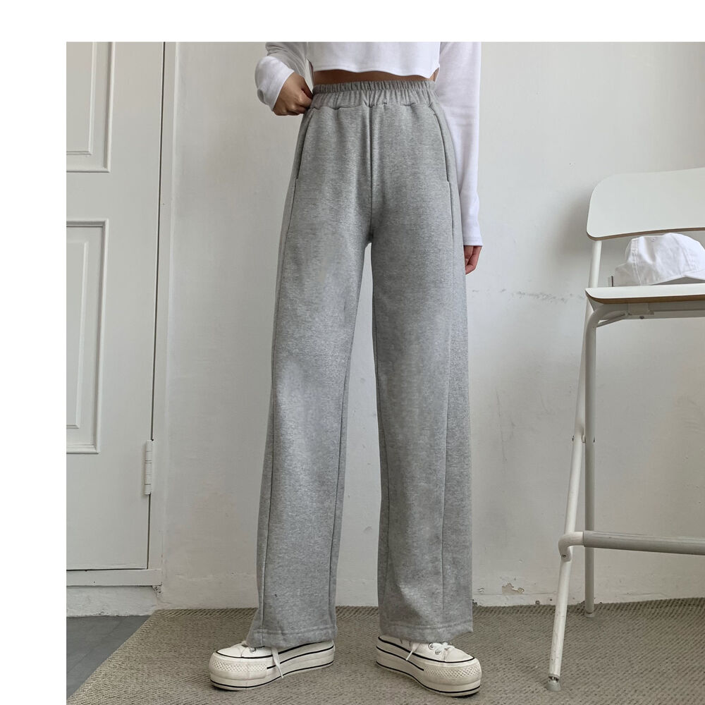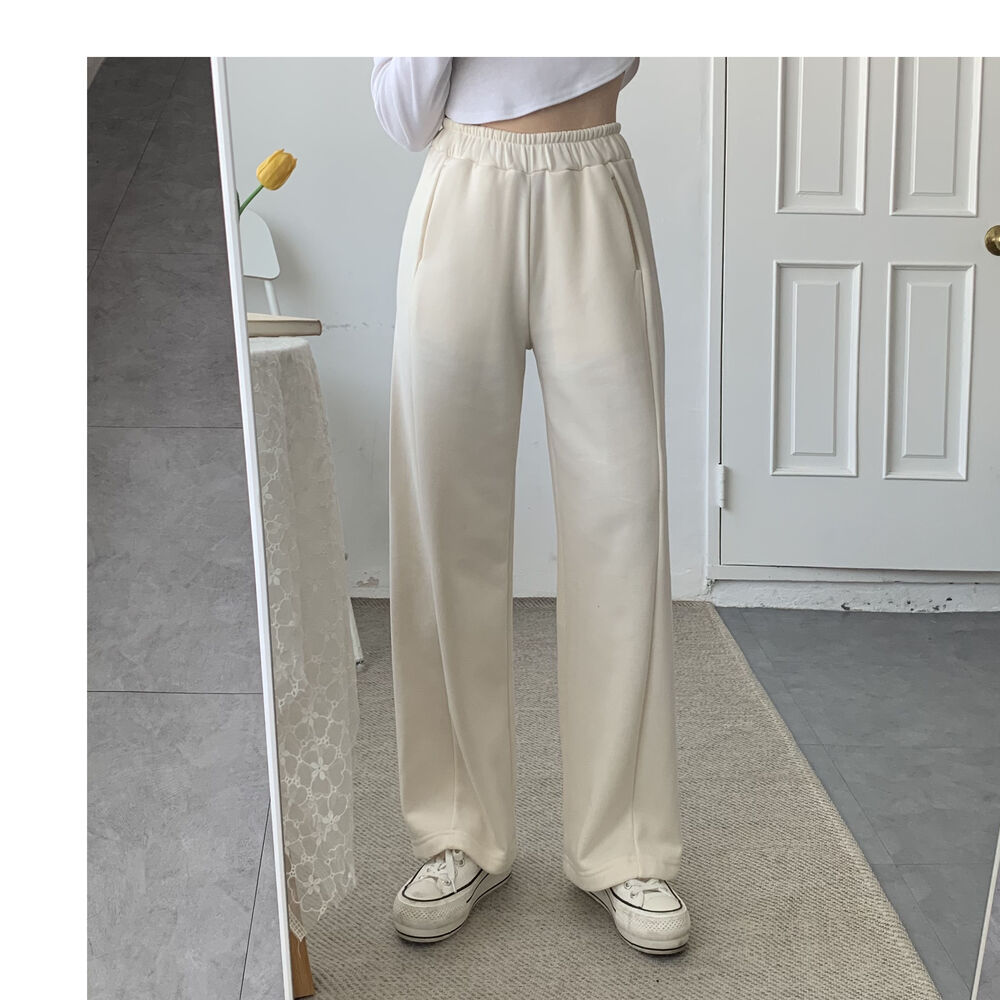 [起毛]ハイウエストワイドストレートバンディングトレーニングパンツ