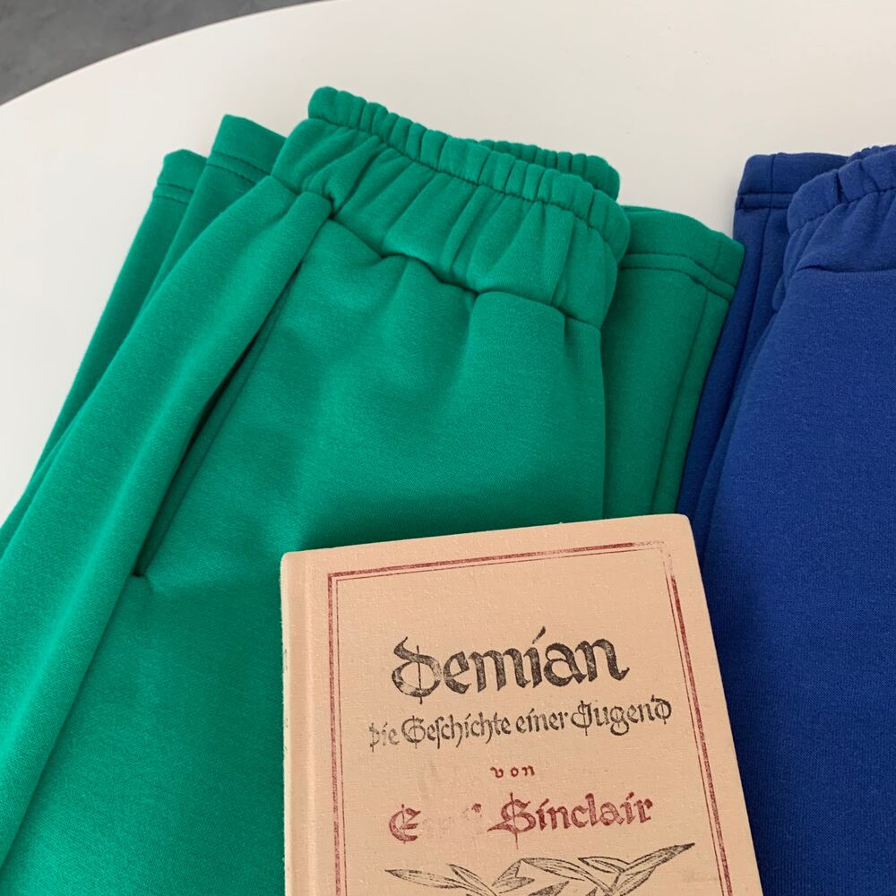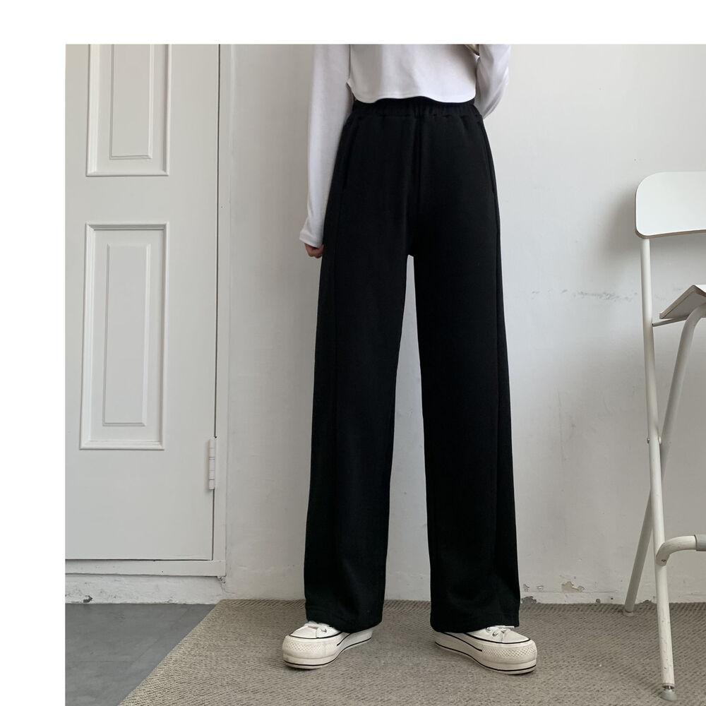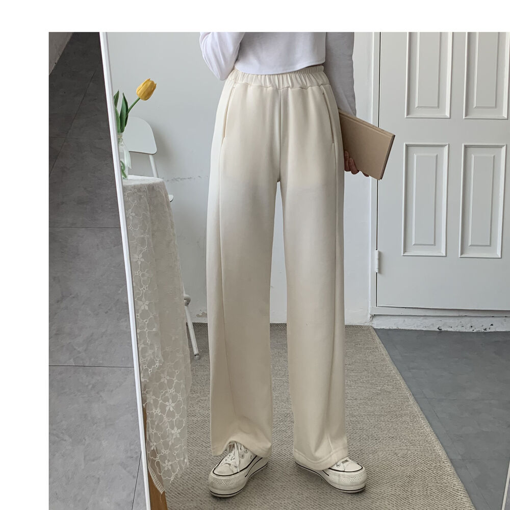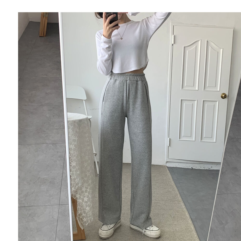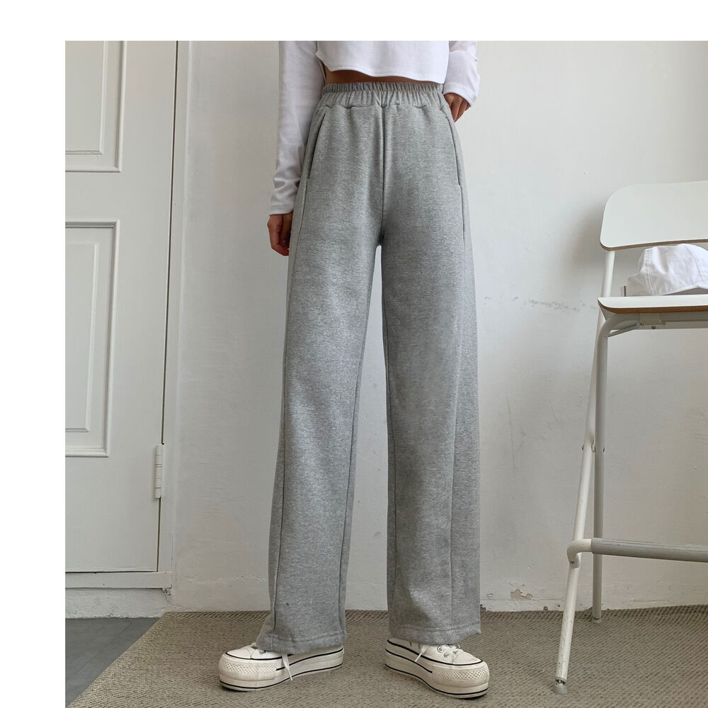 [起毛]ハイウエストワイドストレートバンディングトレーニングパンツ