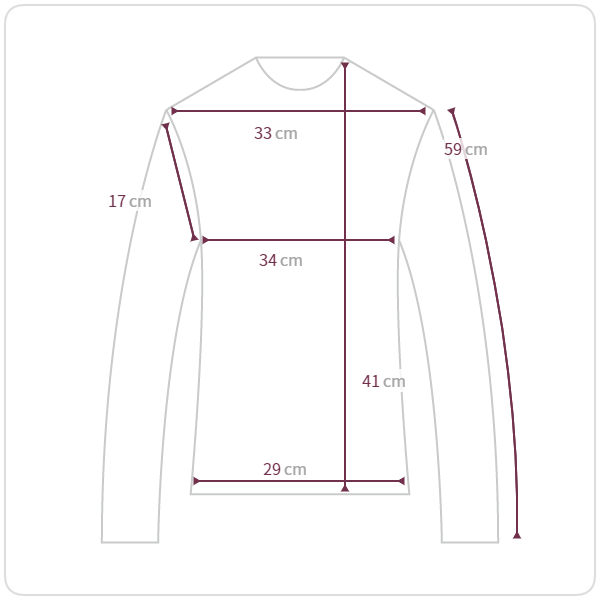 肩幅33 バスト34 袖丈59 袖断面9.5 アームホール17 袖幅13 裾周り29 着丈41