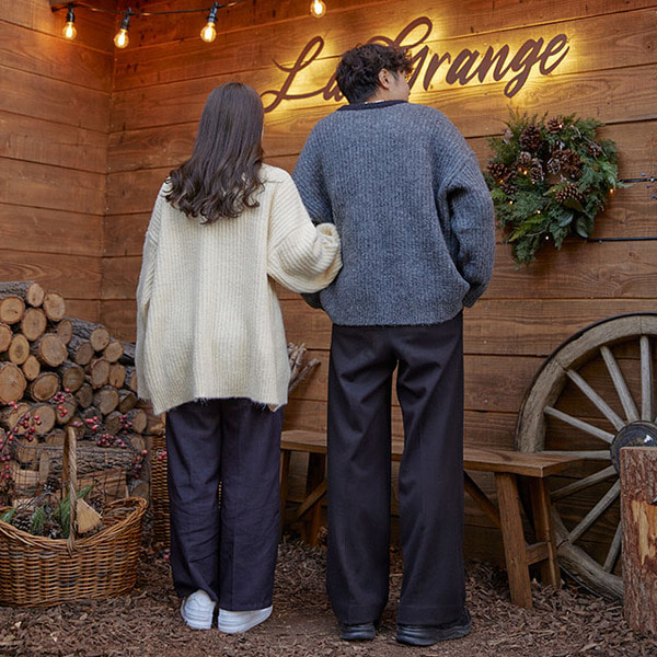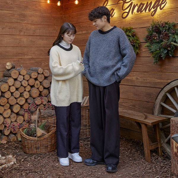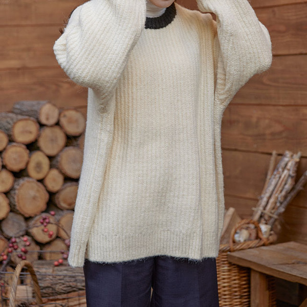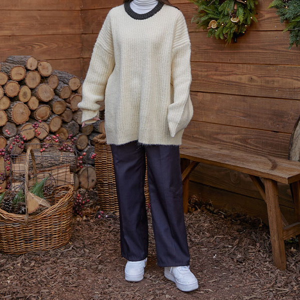ラウンドバイカラーカップルニット