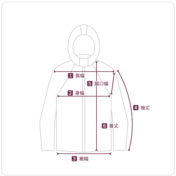 6 着丈 | 70 27.5 | 72 28.5 | 74 29 |