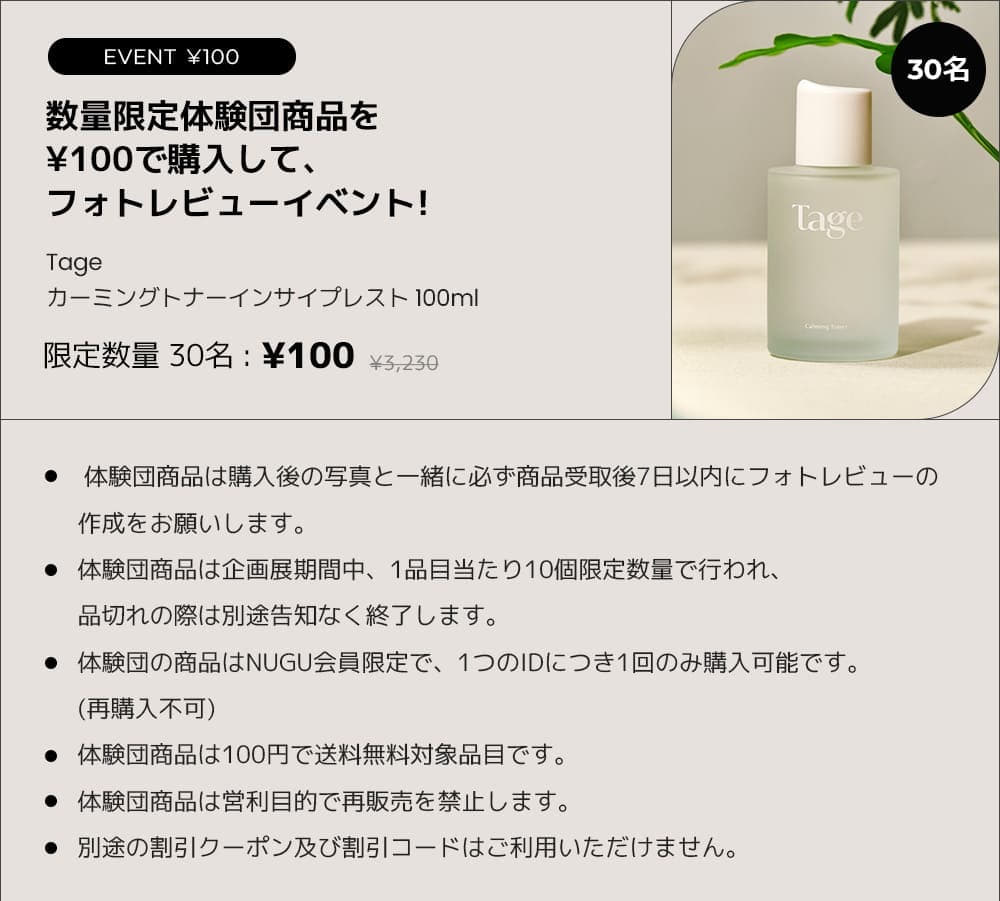 [nugu会員登録必須]Tage カーミングトナーインサイプレスト 100ml