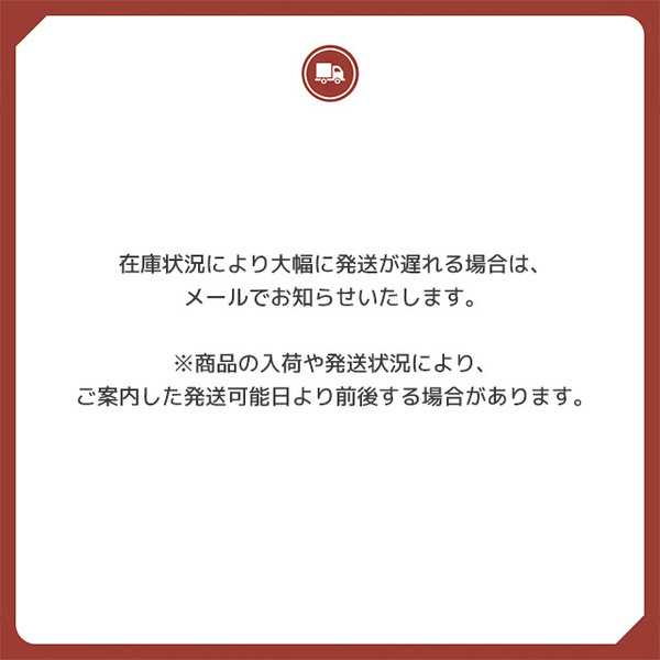 仕入れ先の予定により入庫・配送遅延が生じることがございます。