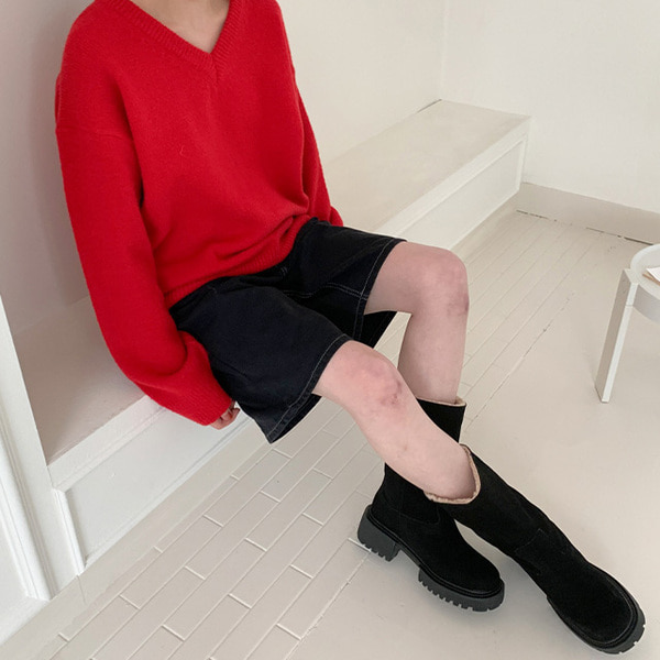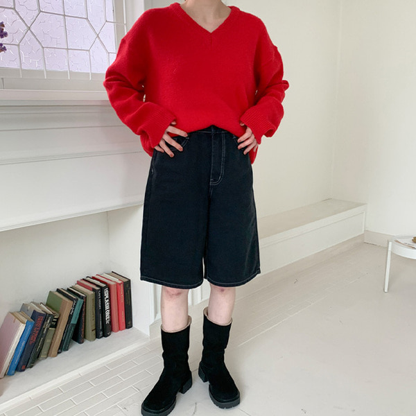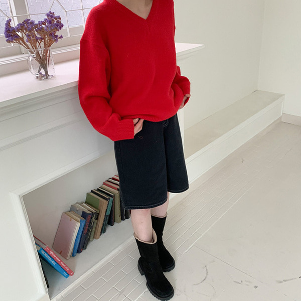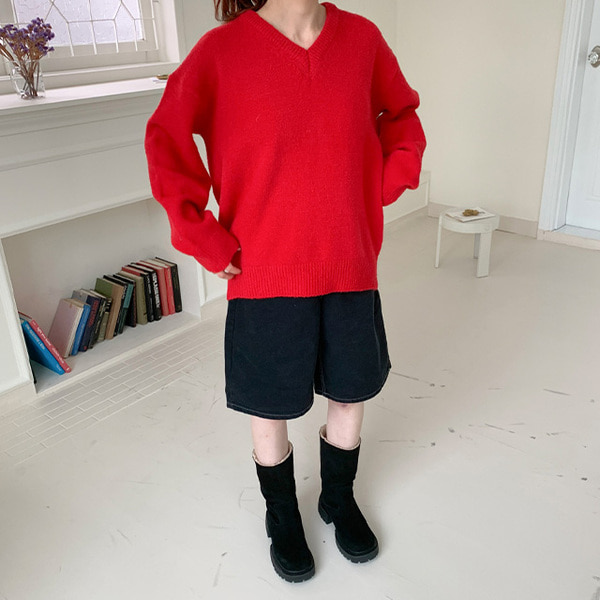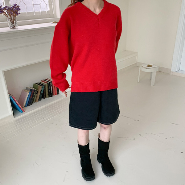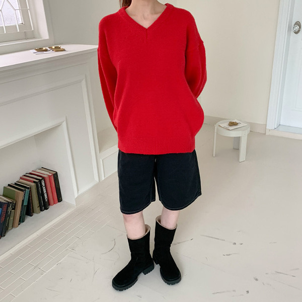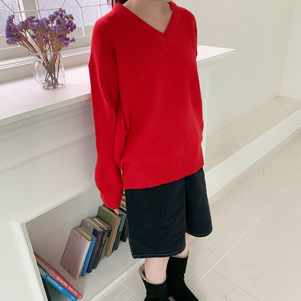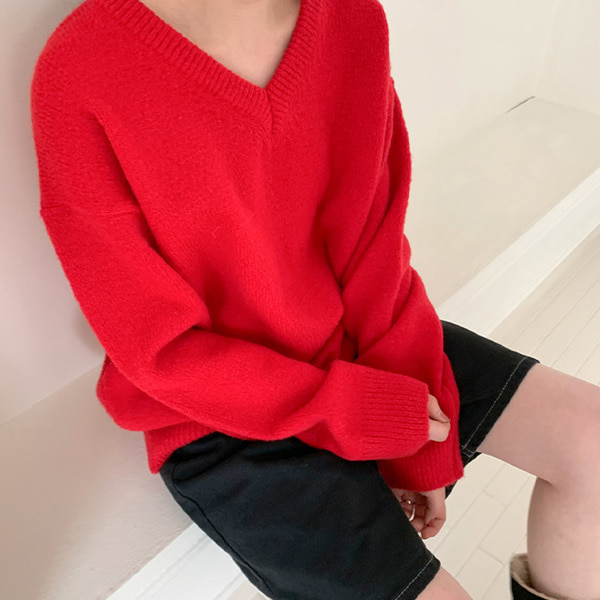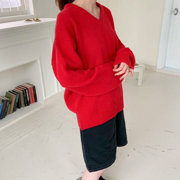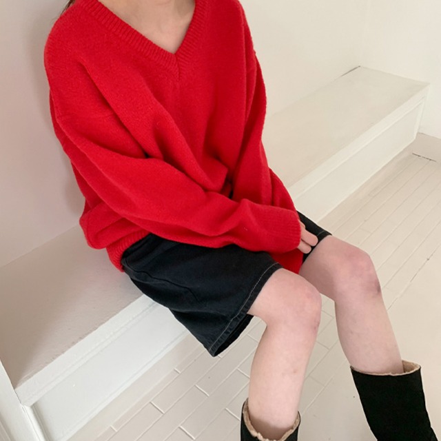ウールVネックオーバーニット