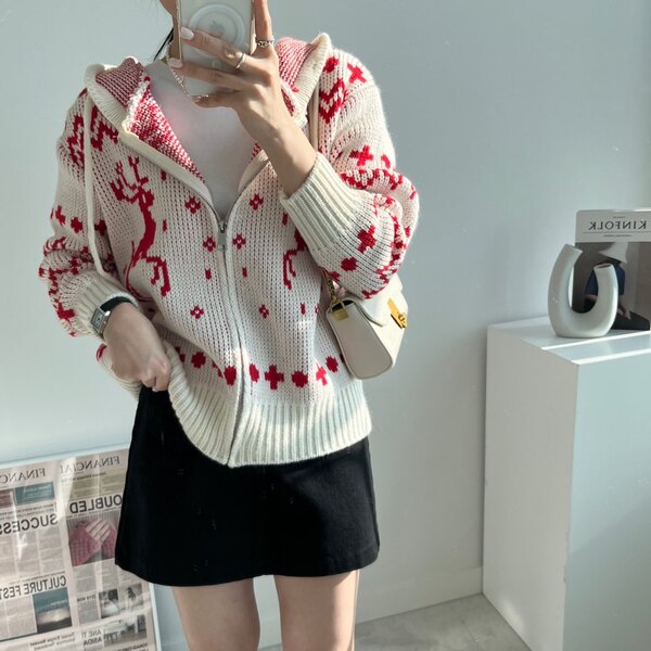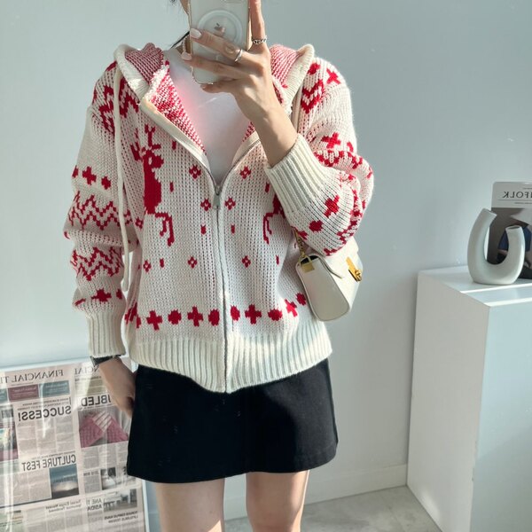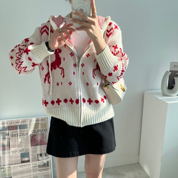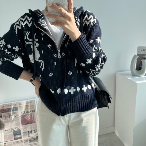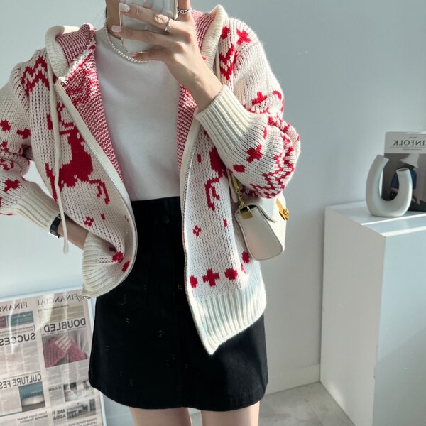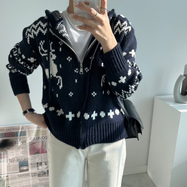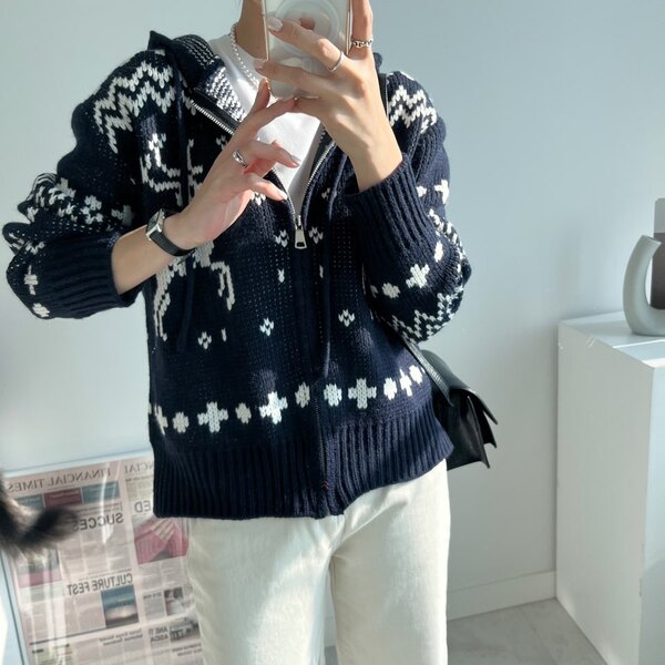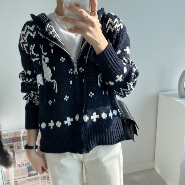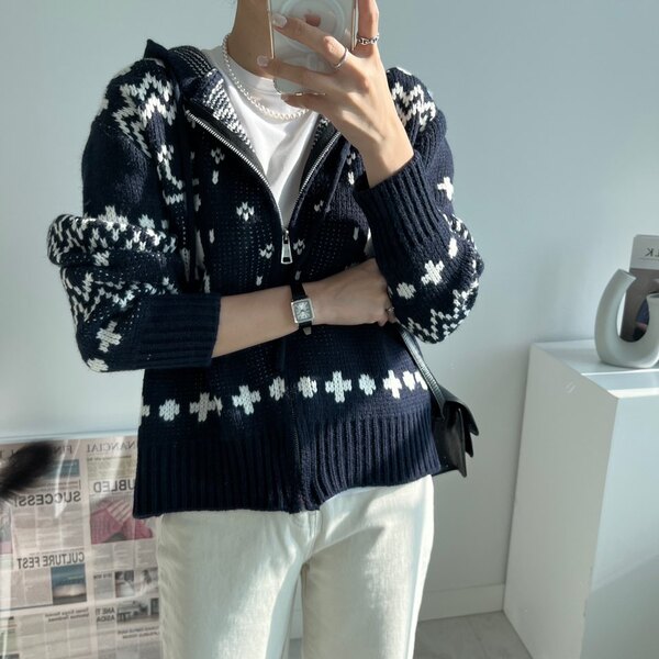 冬の感じニットパーカーニットフード付きカーディガン