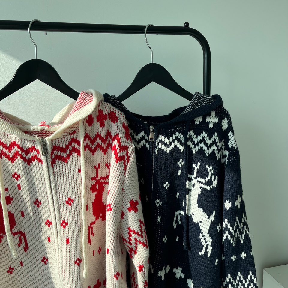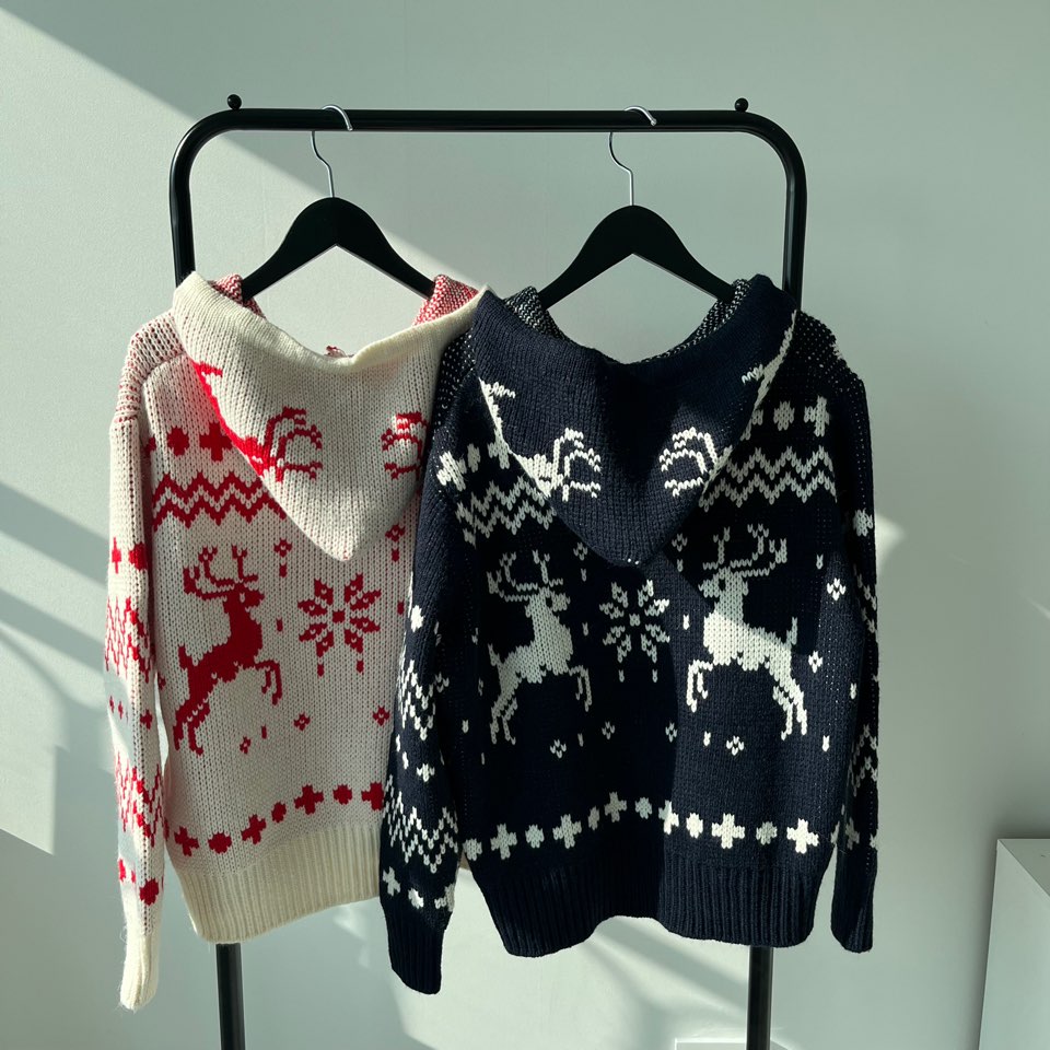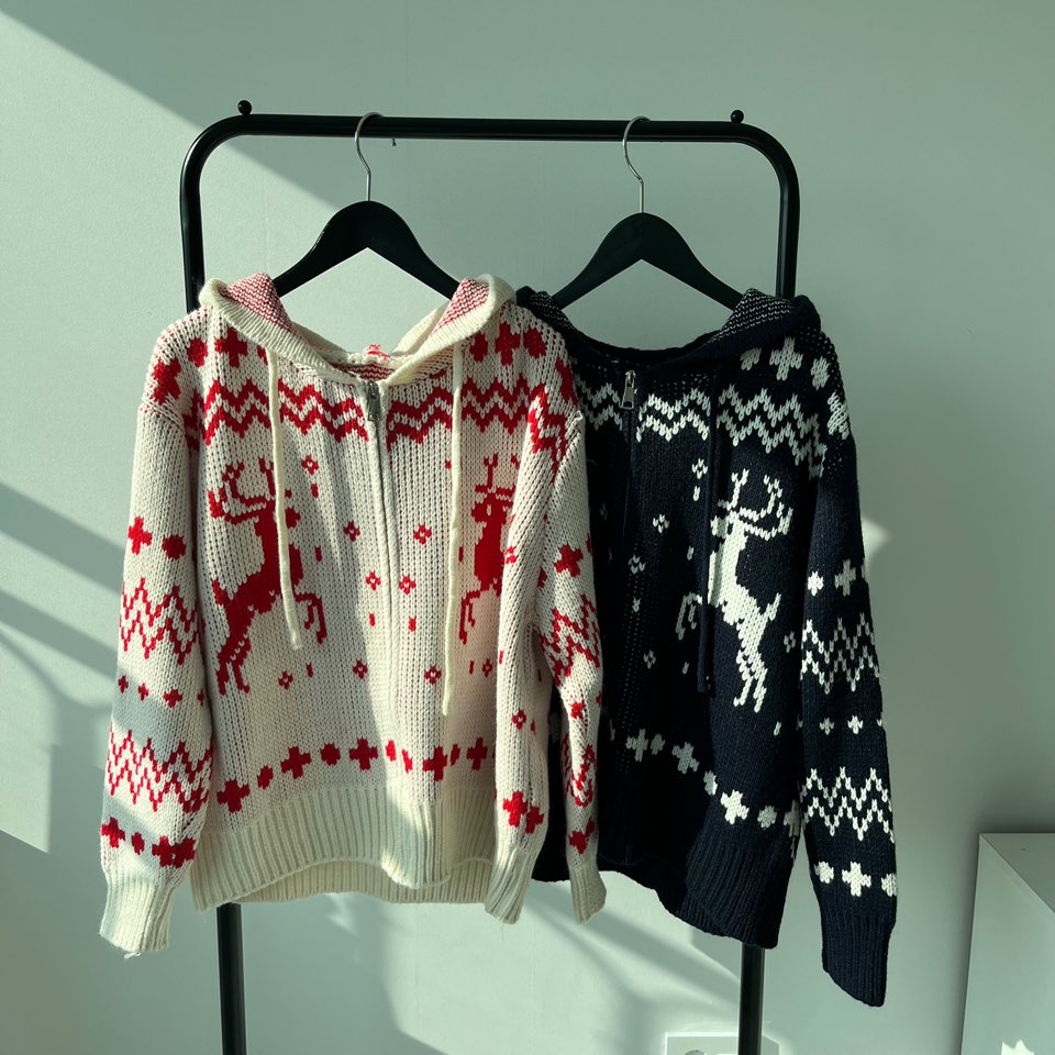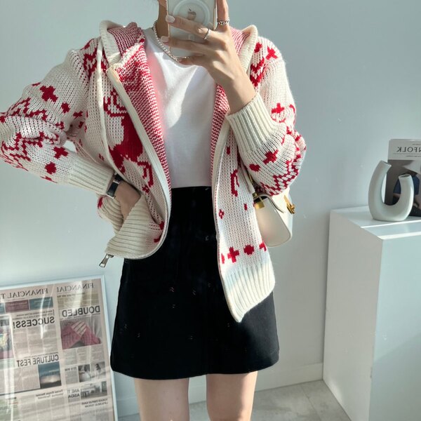 冬の感じニットパーカーニットフード付きカーディガン