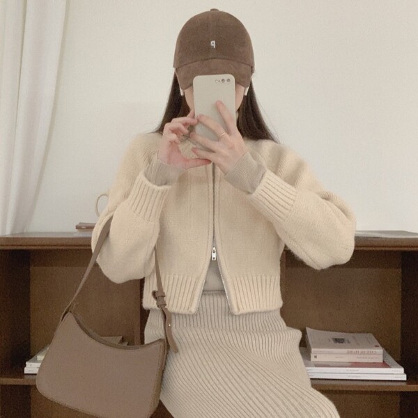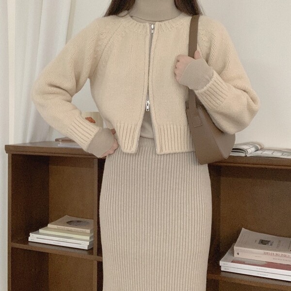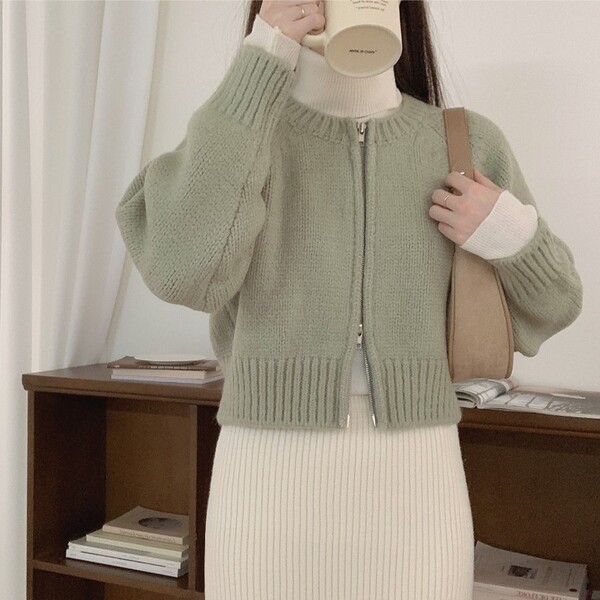 [2WAY]パレットラウンドネックニットジップカーディガン