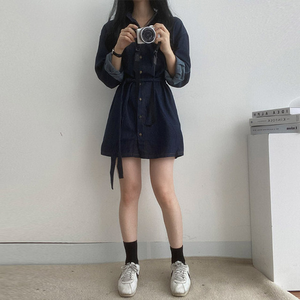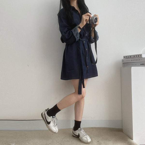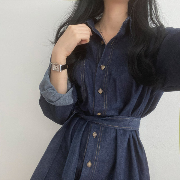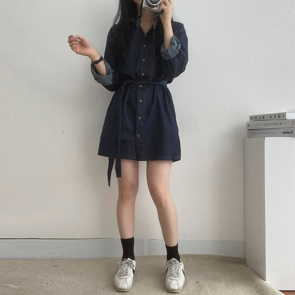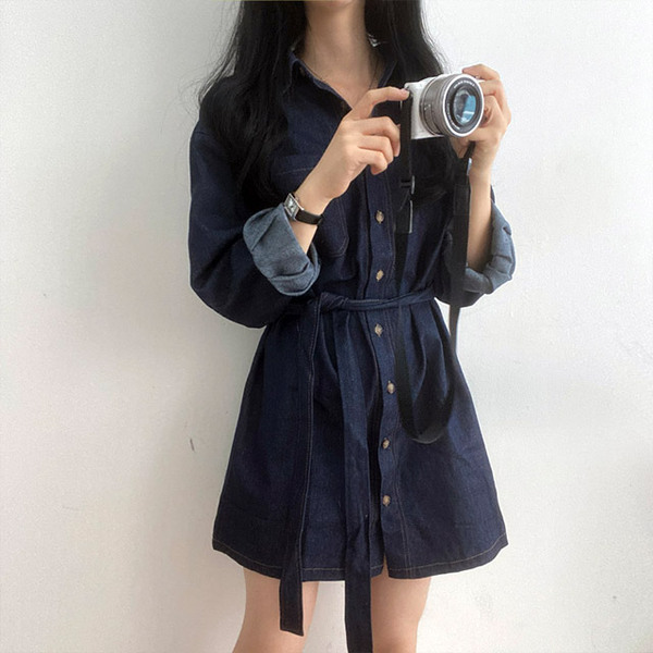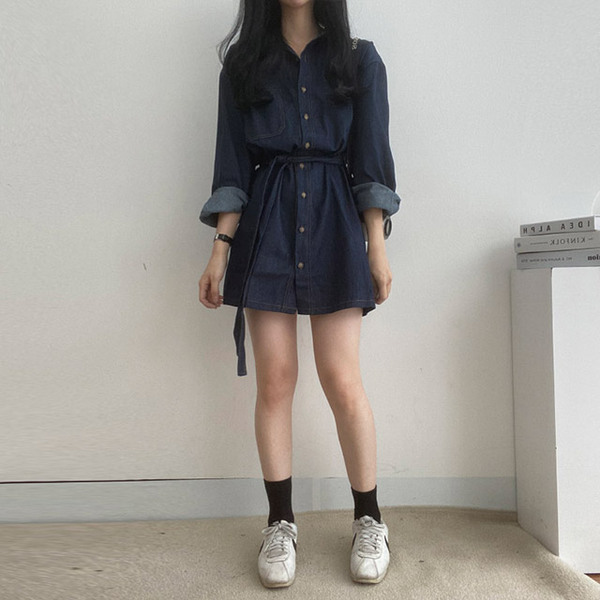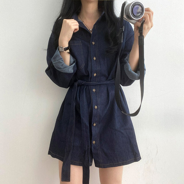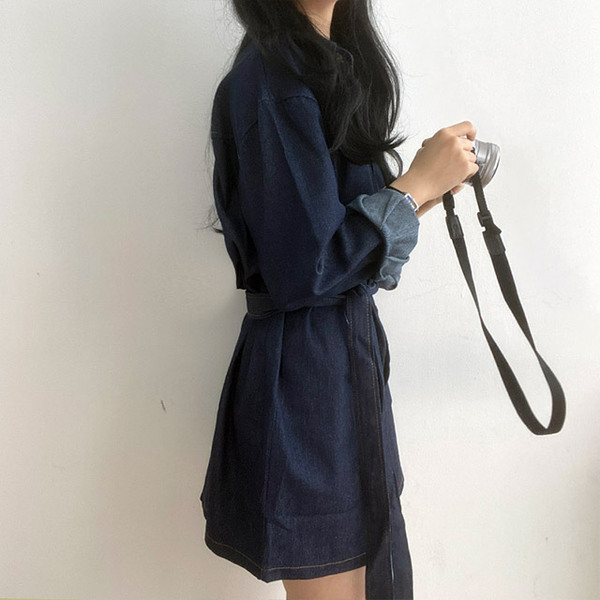Women's/[2color] デニム ポケット ベルト ワンピース