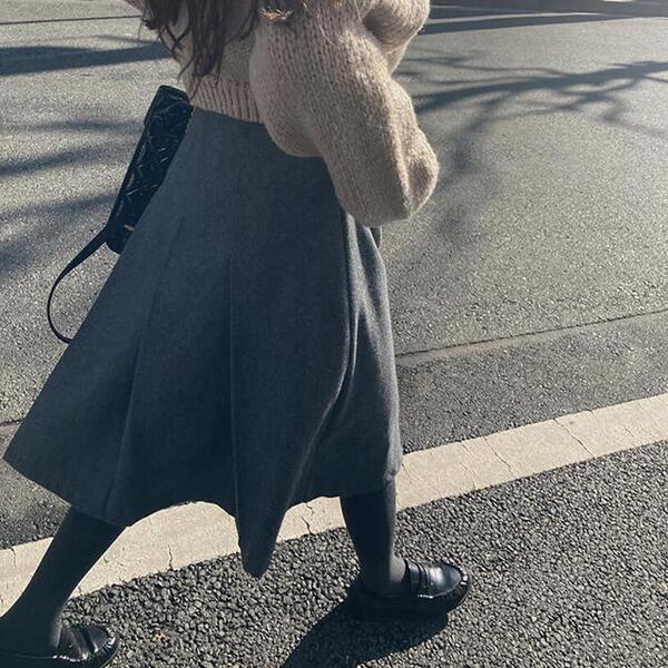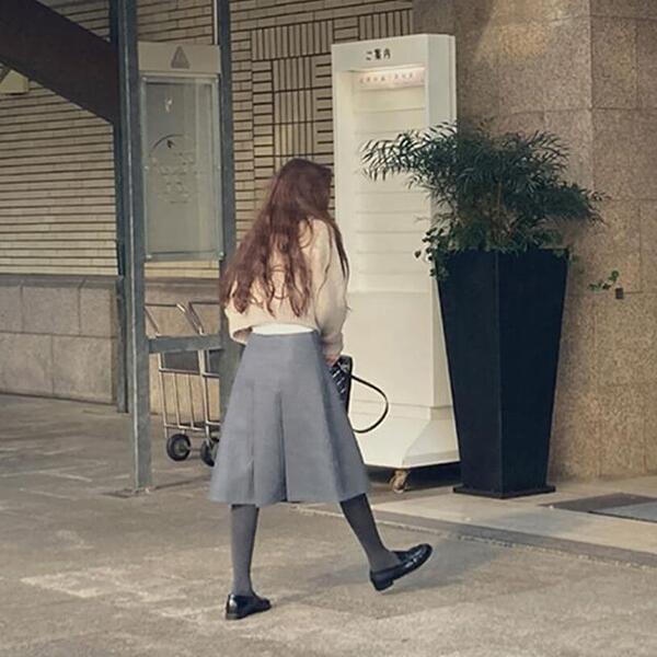페미닌하게 떨어지는 A라인의 실루엣이라 다리라인이 더 예뻐보입니다.