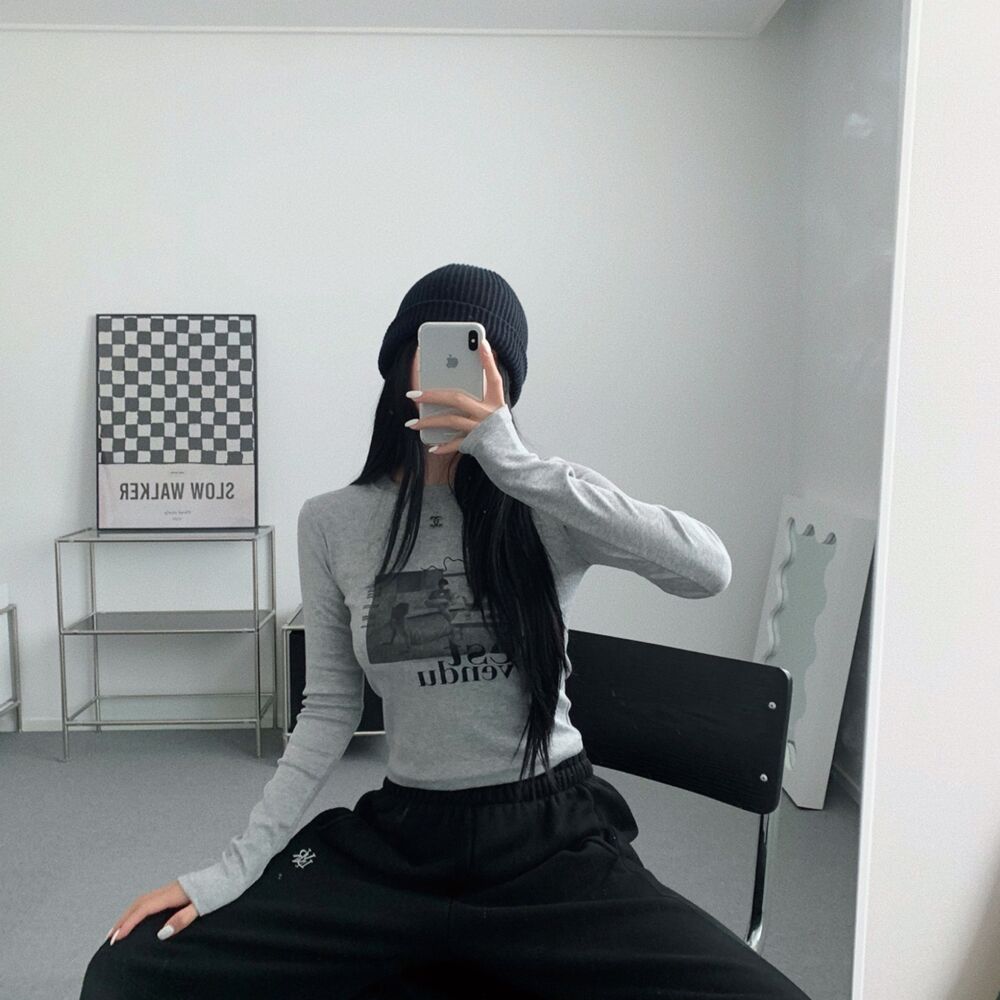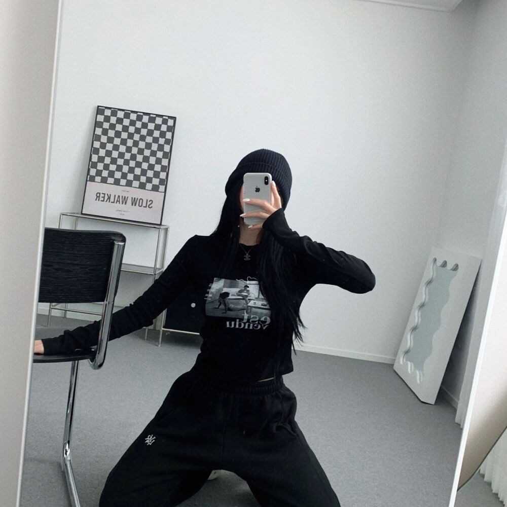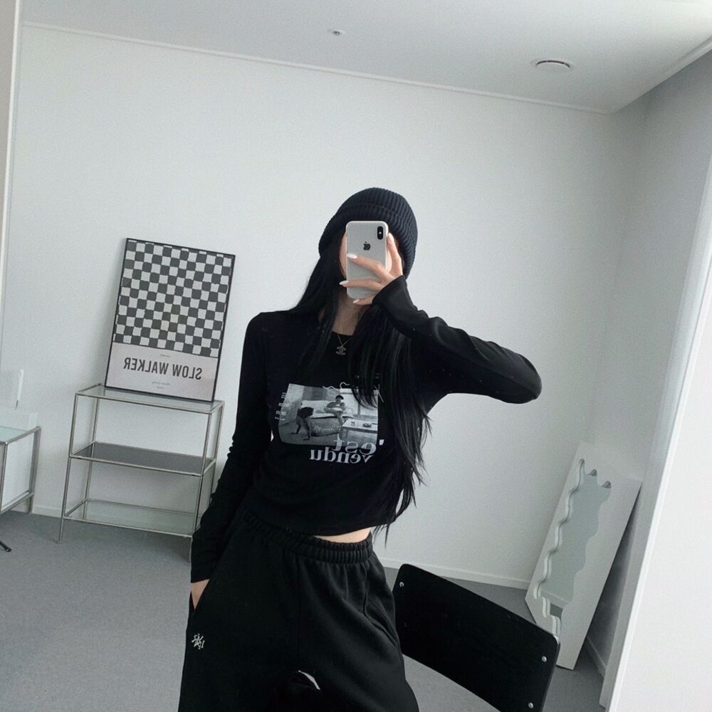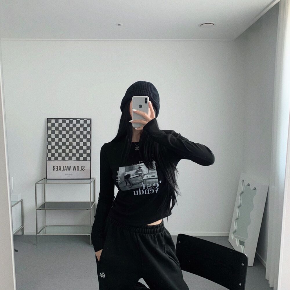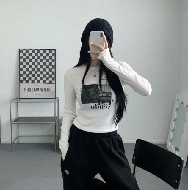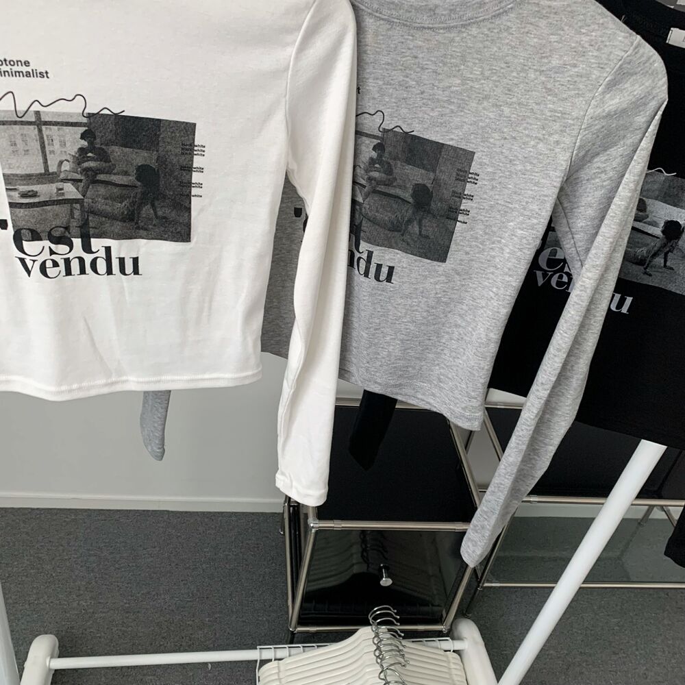 [新商品]モノトーンクロッププリント長袖Tシャツ