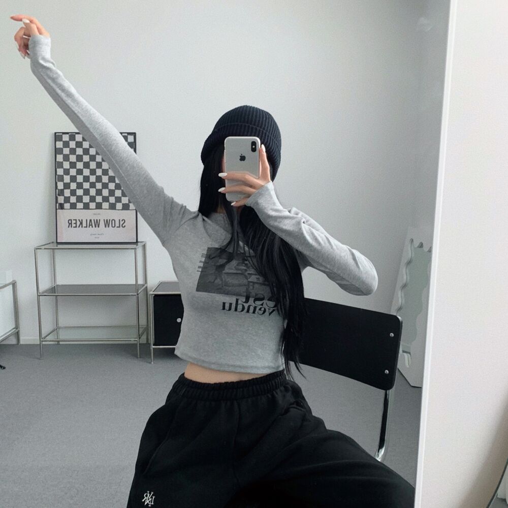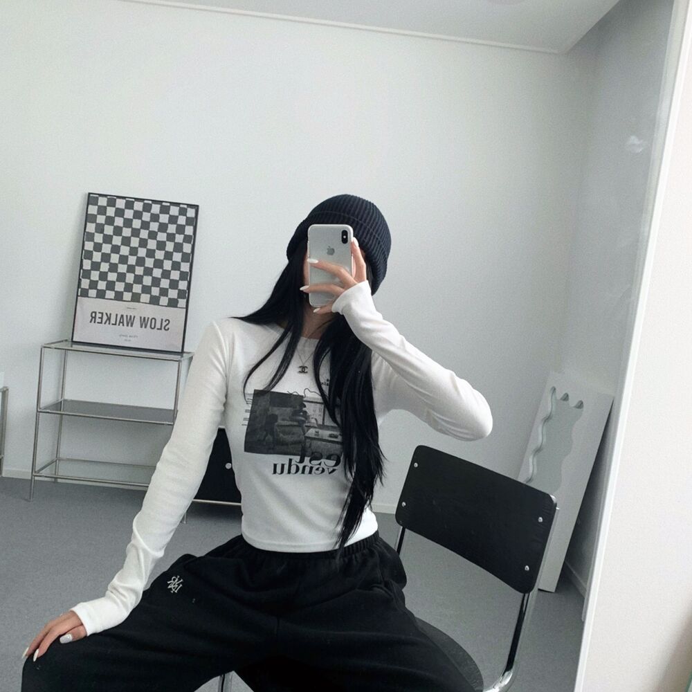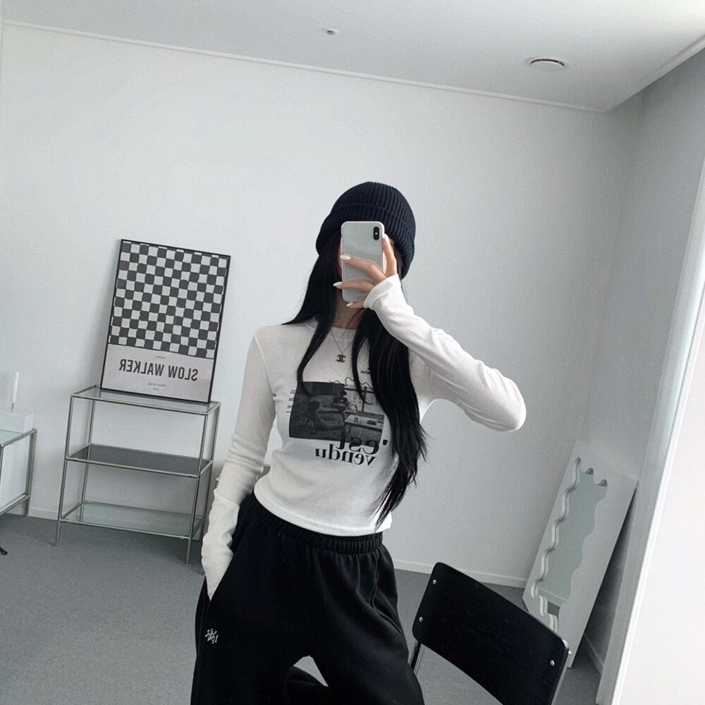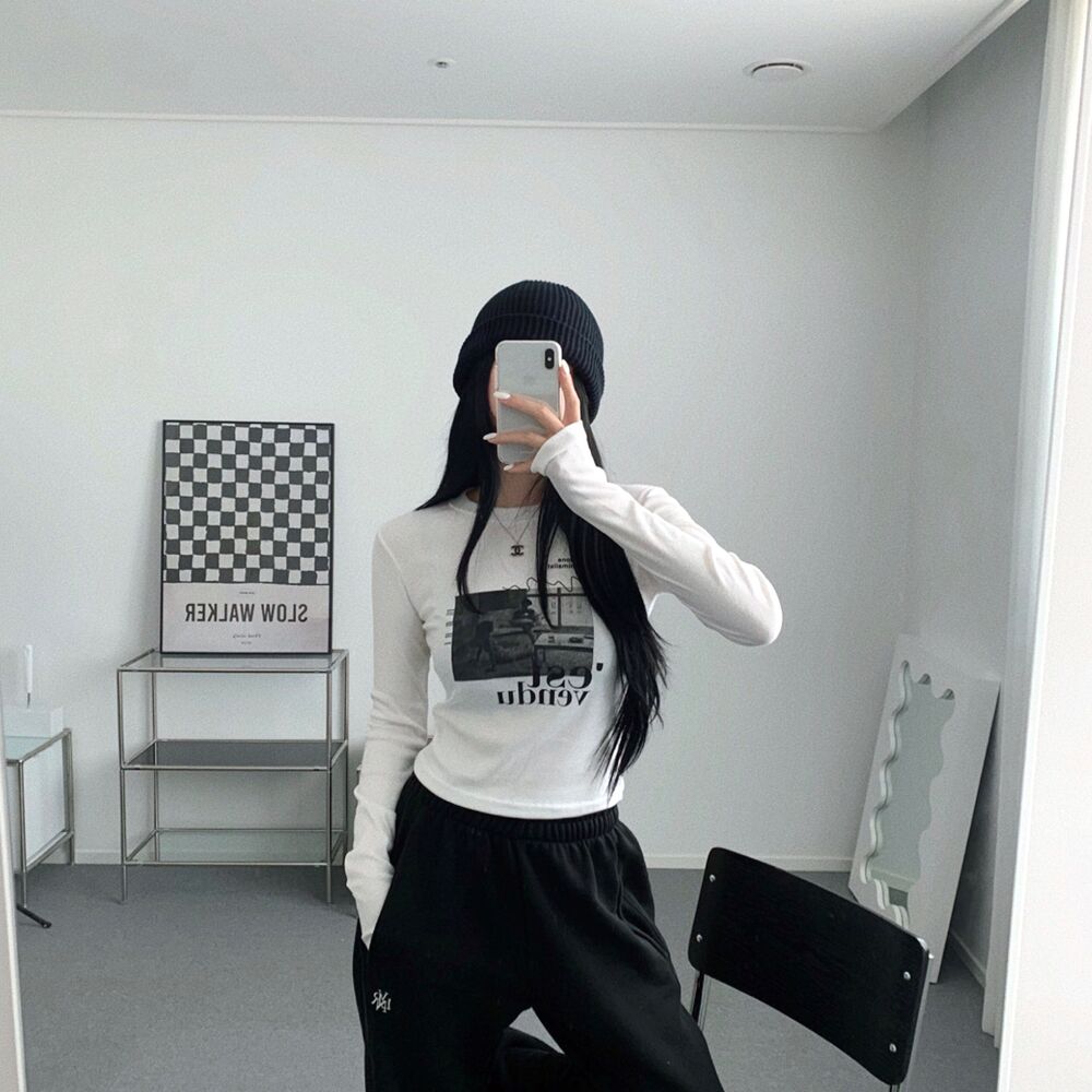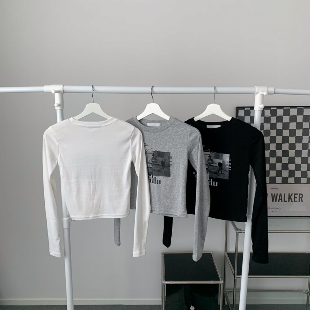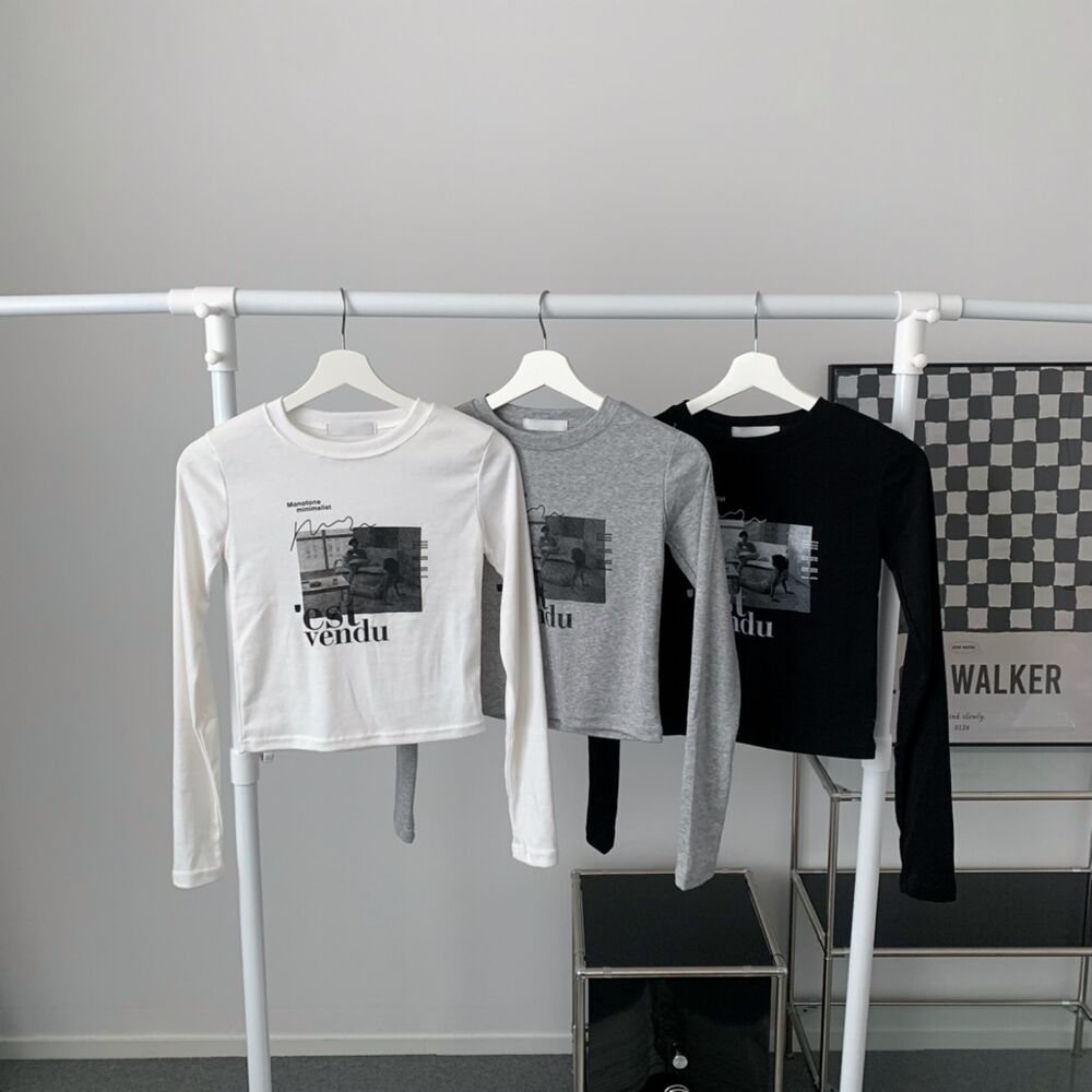 Women's/[新商品]モノトーンクロッププリント長袖Tシャツ