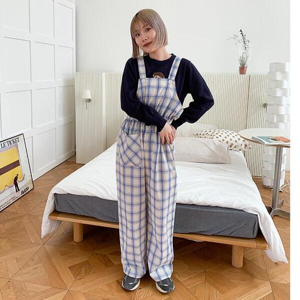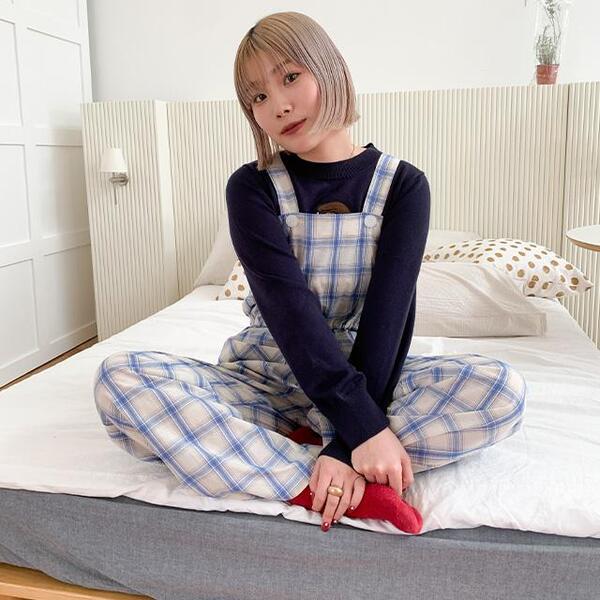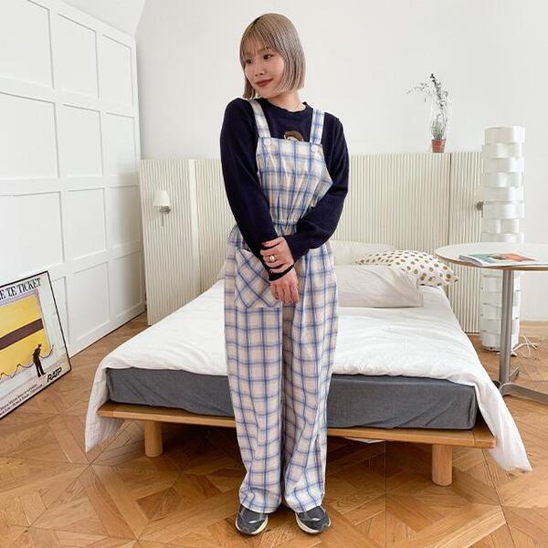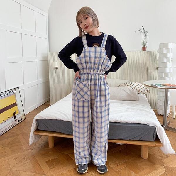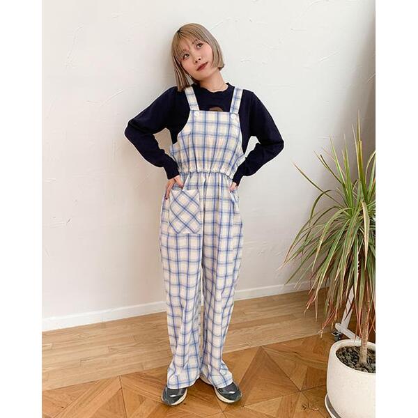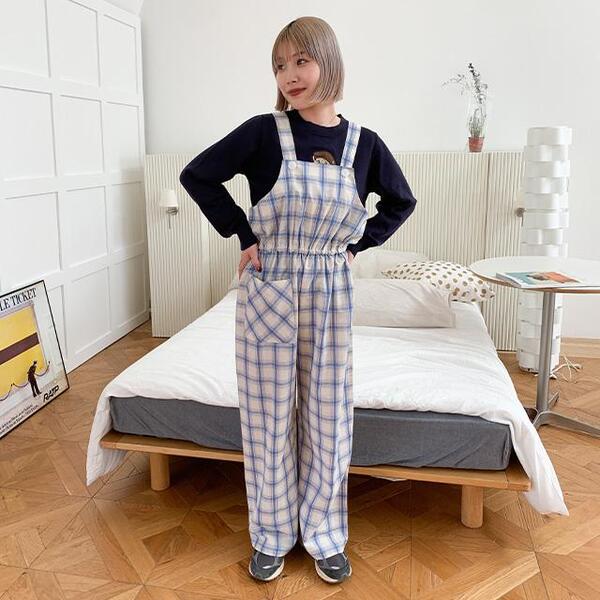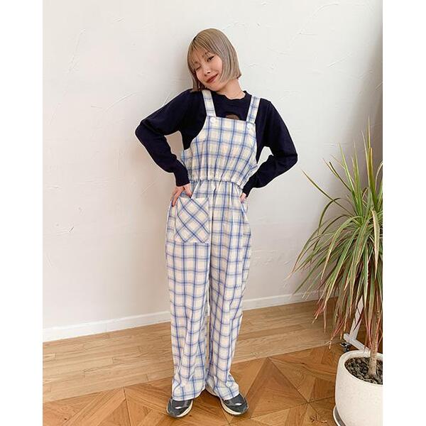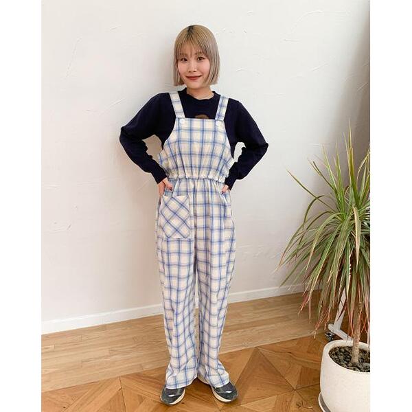 チェックオーバーオール