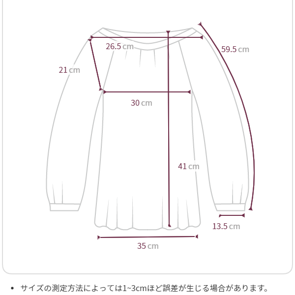 - サイズの測定方法によっては1~3cmほど誤差が生じる場合があります。