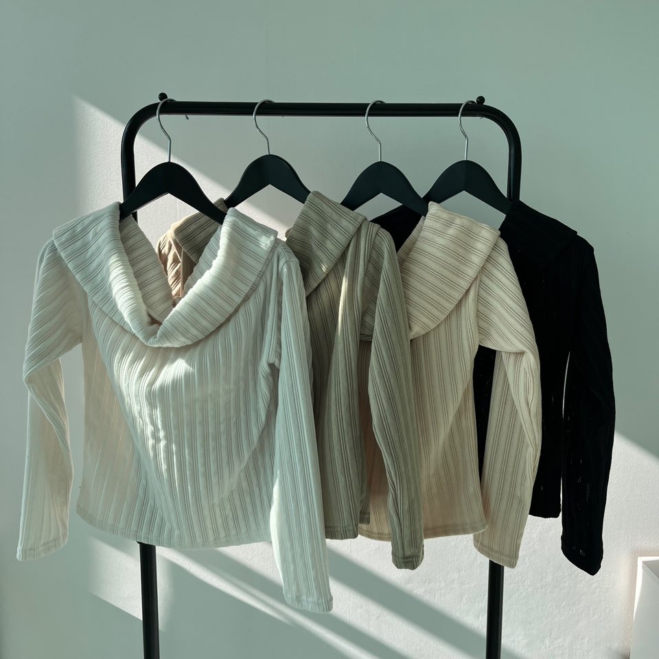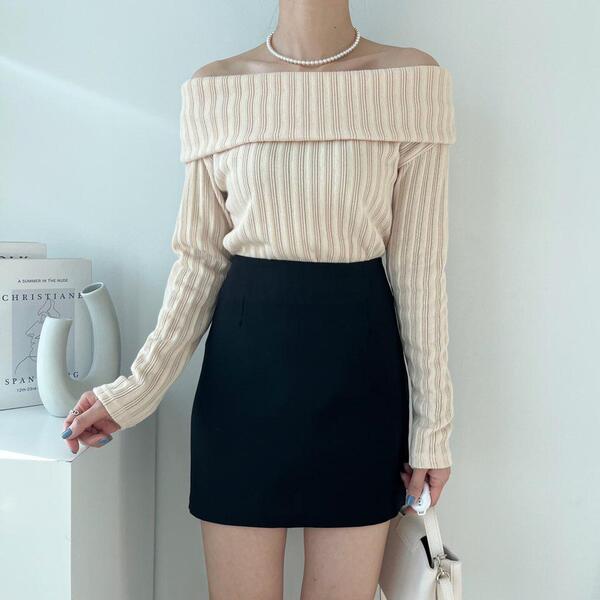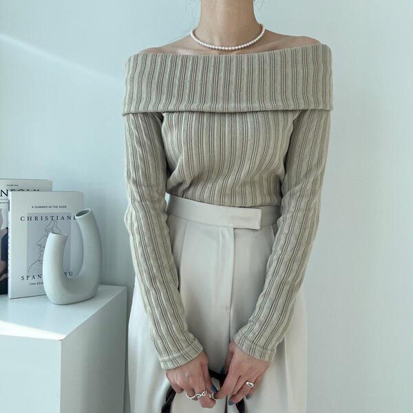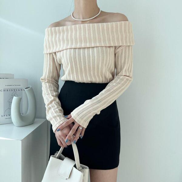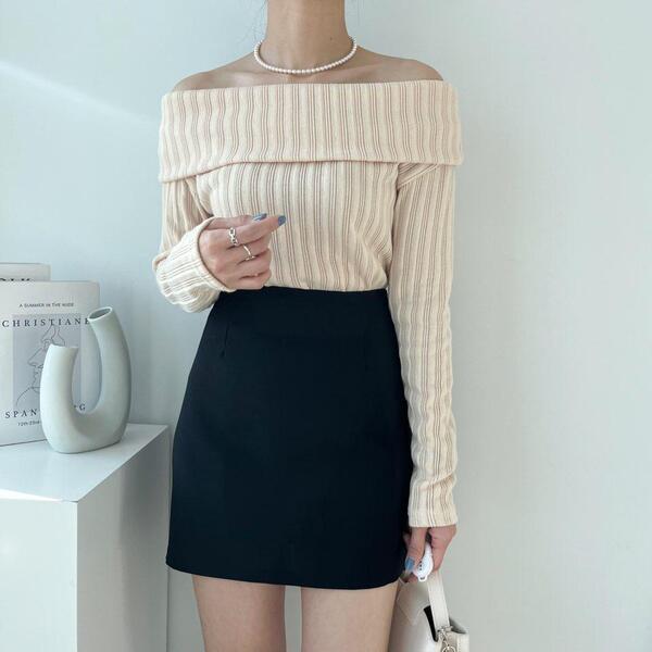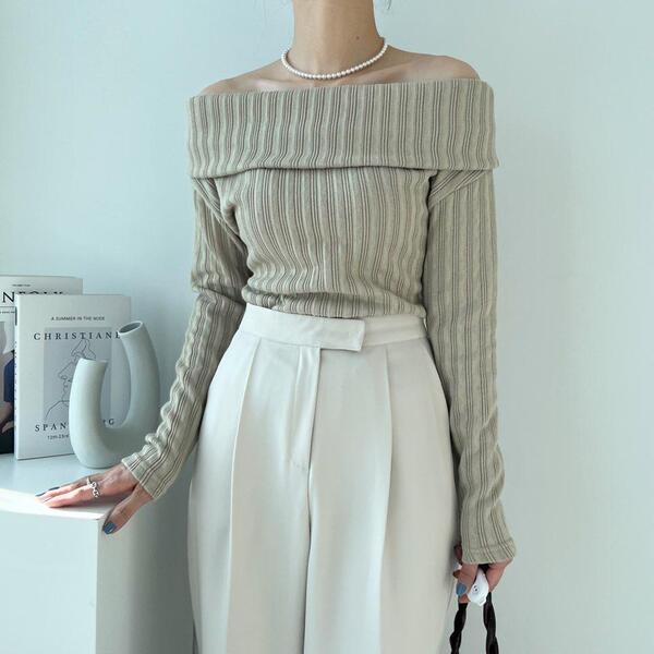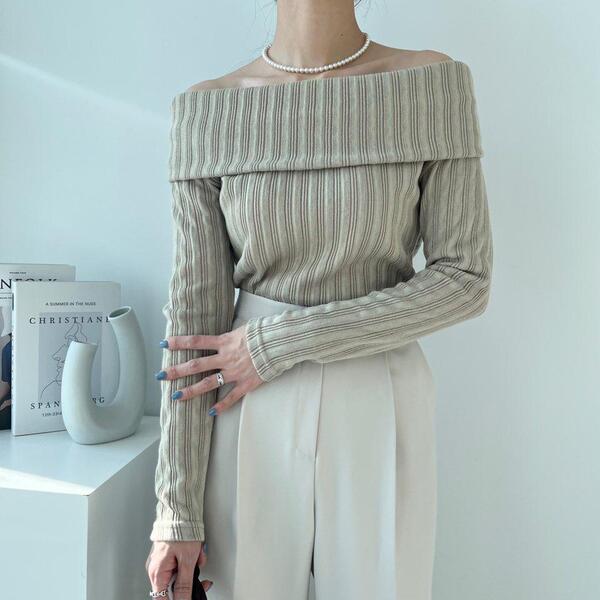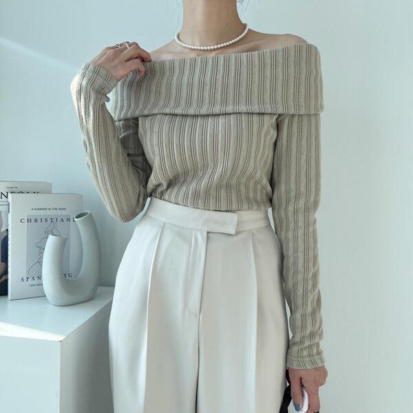 (4col)スリム オフショルダー リブ Tシャツ