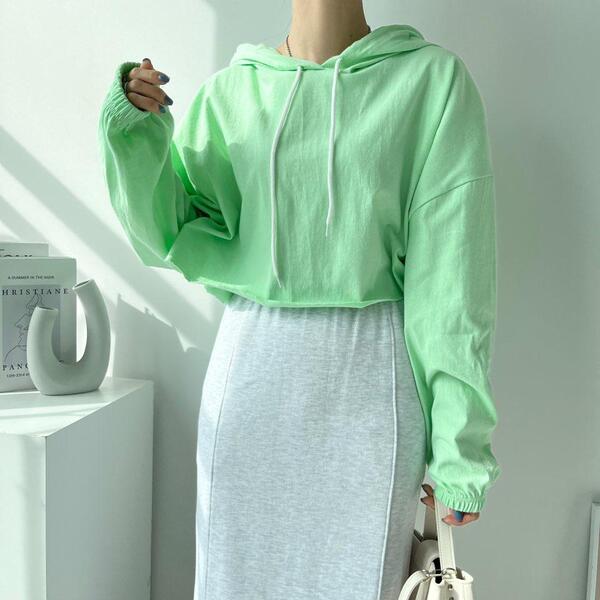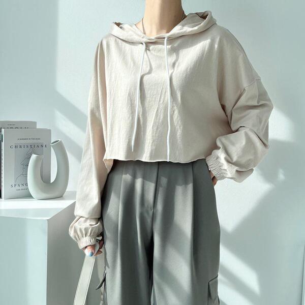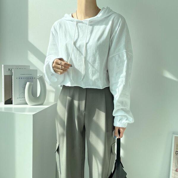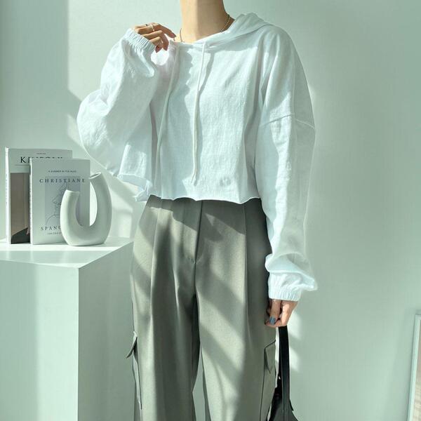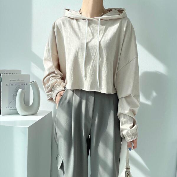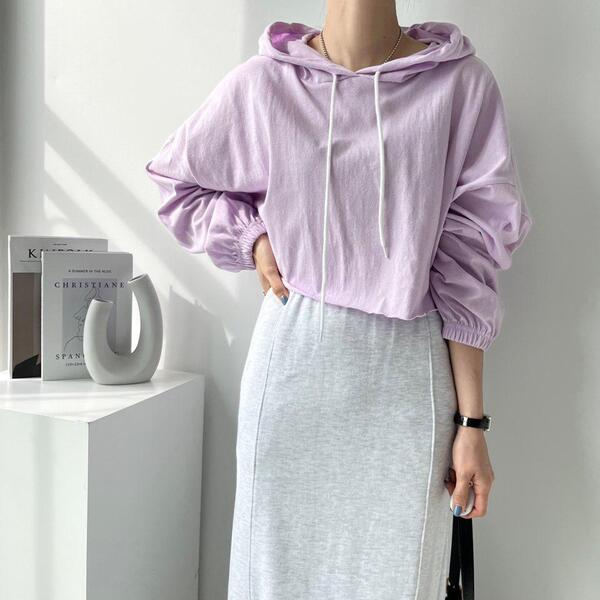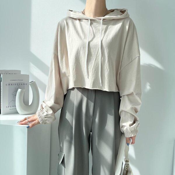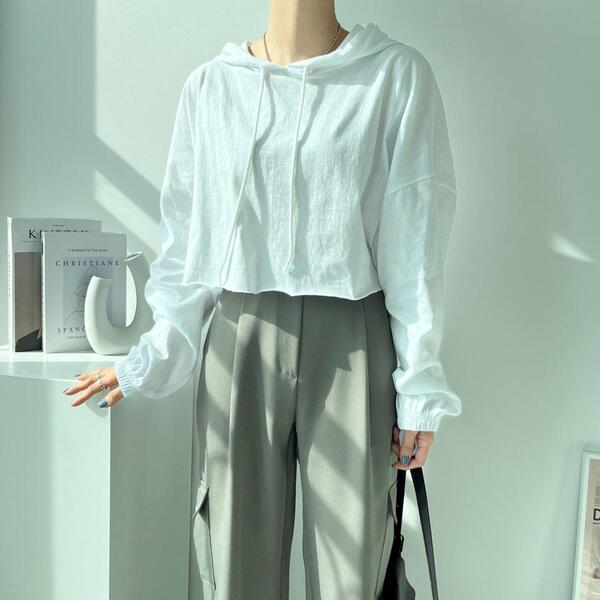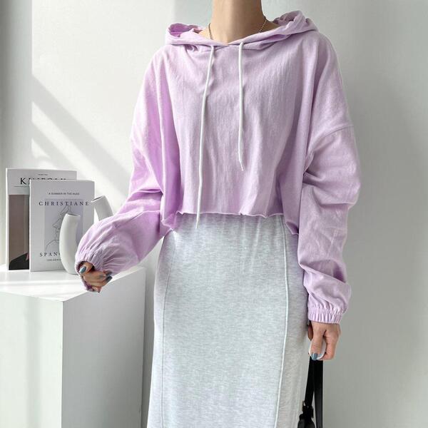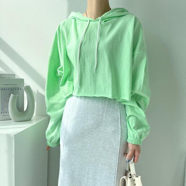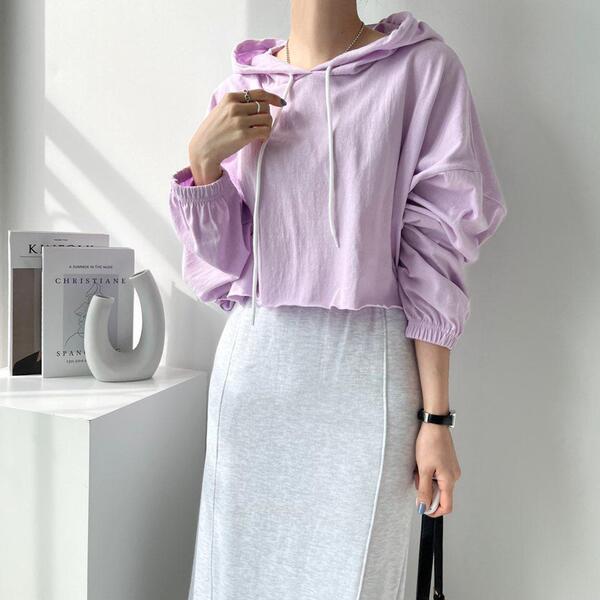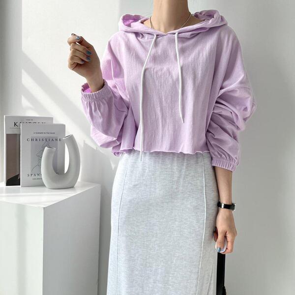 Women's/(4col)ゼリー コットン クロップ フード Tシャツ