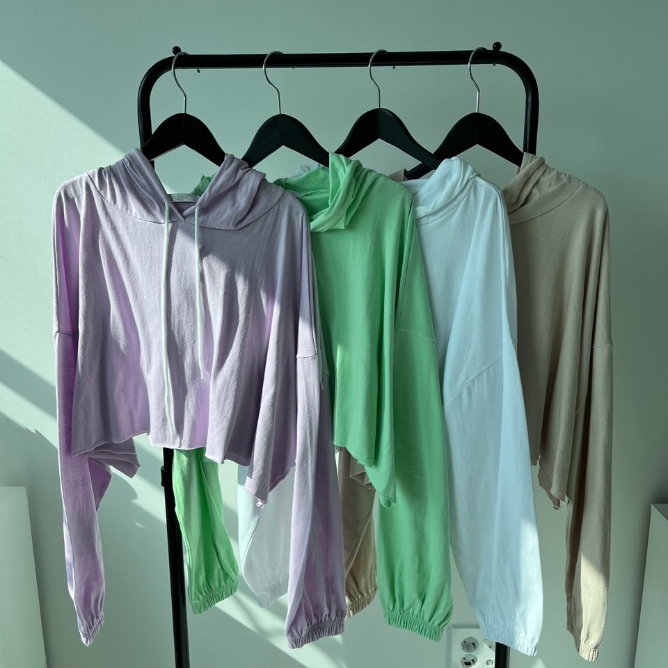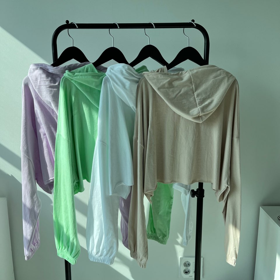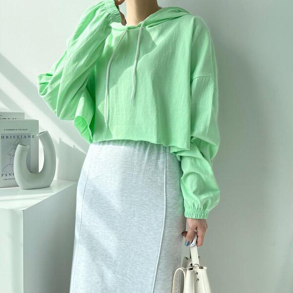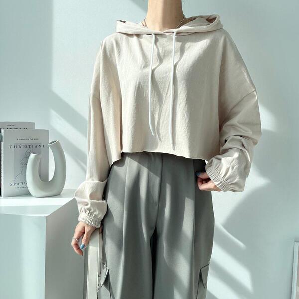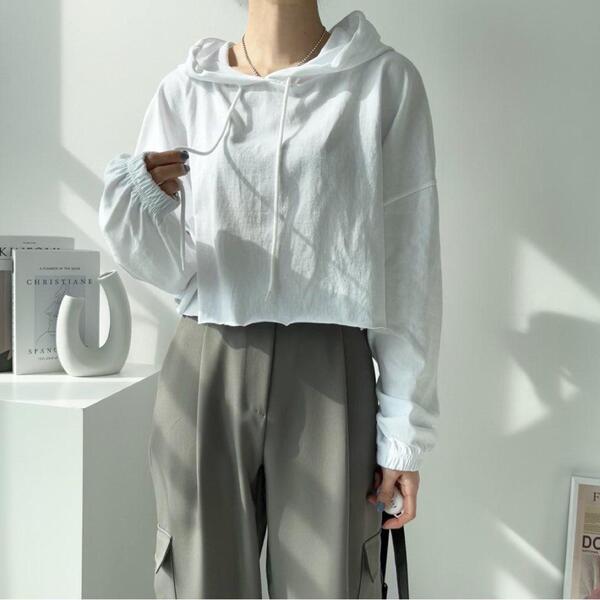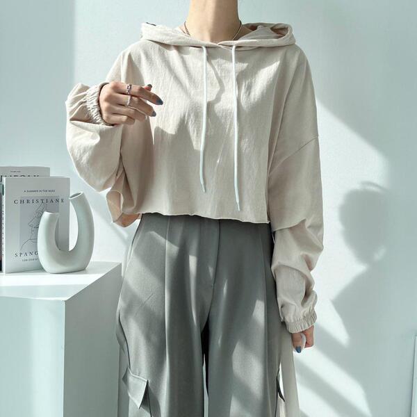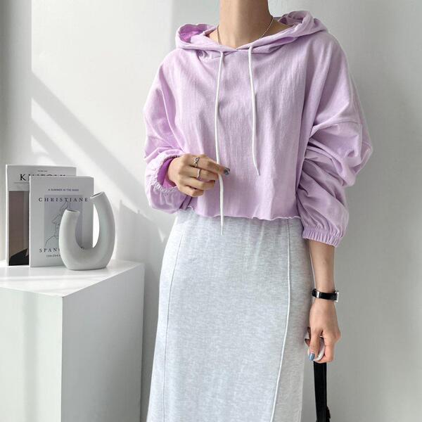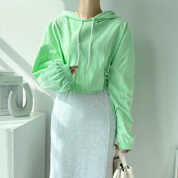 Women's/(4col)ゼリー コットン クロップ フード Tシャツ