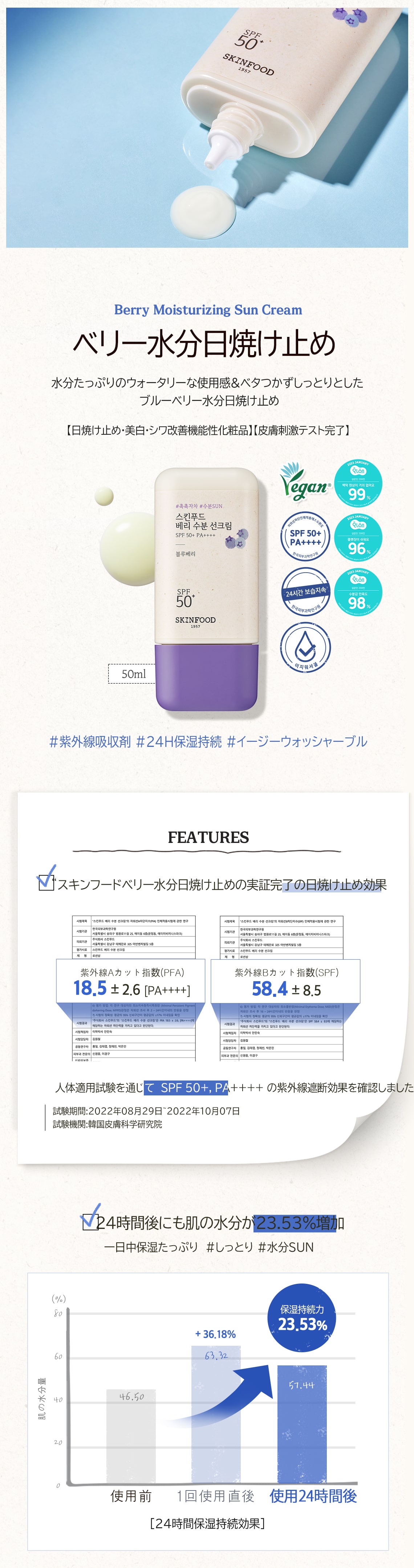 ベリー水分日焼け止め SPF 50 + PA ++++ 50ml