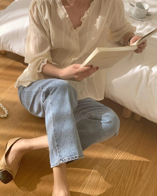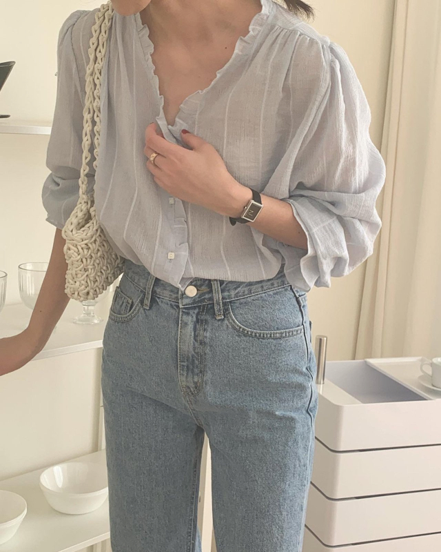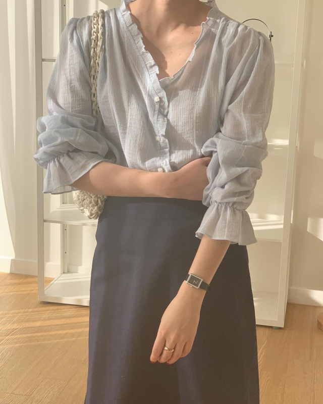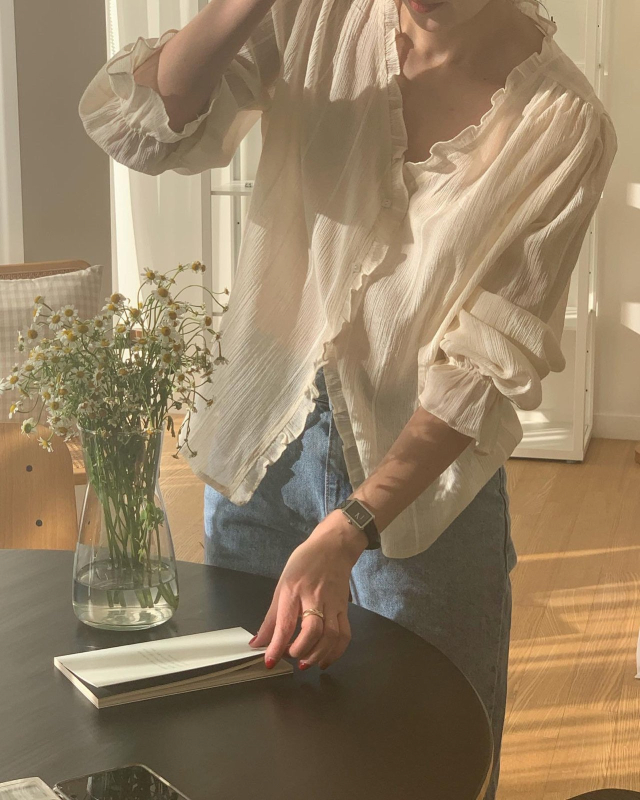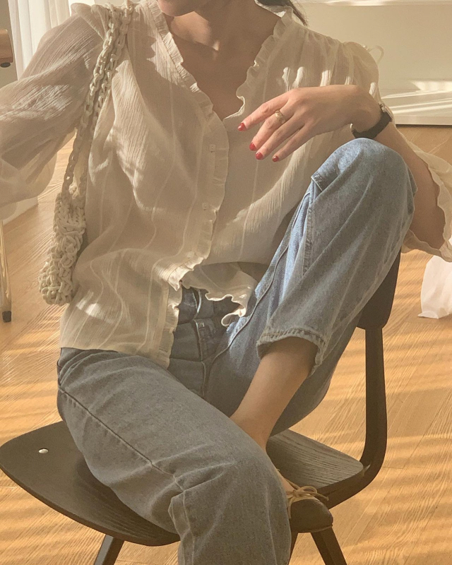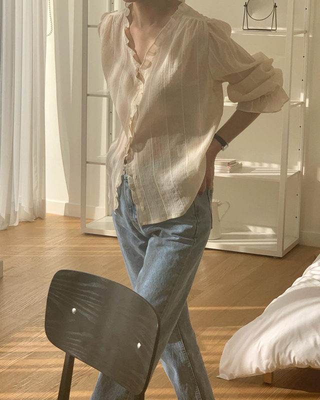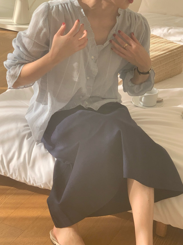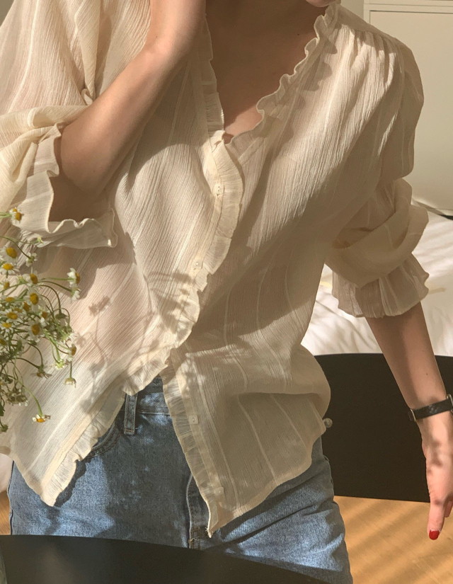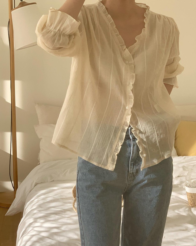 Women's/London lace Le MansVネックフリルブラウス