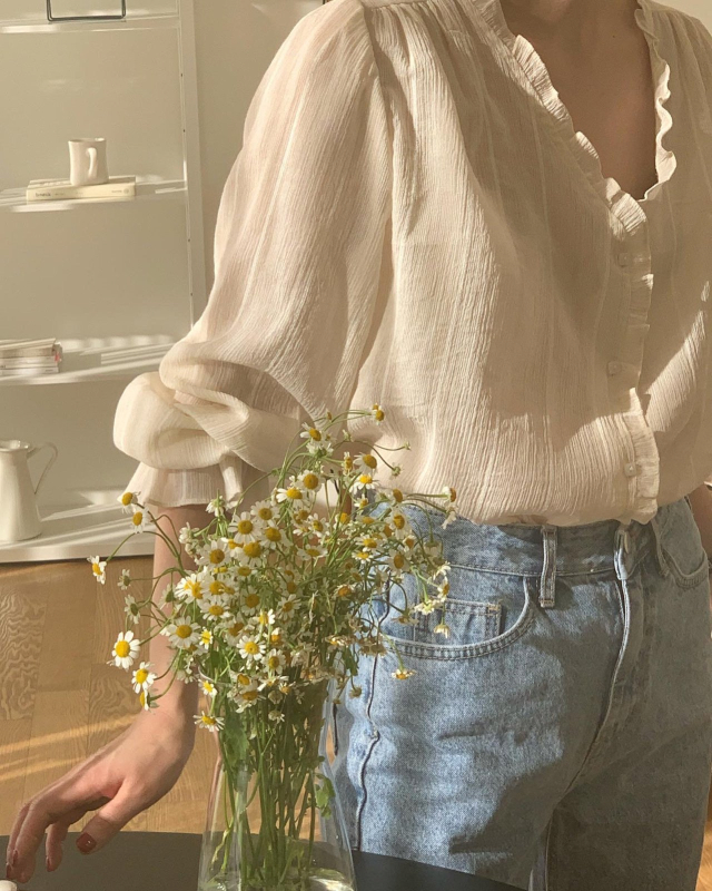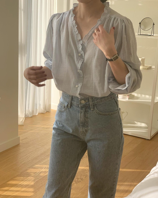 London lace Le MansVネックフリルブラウス