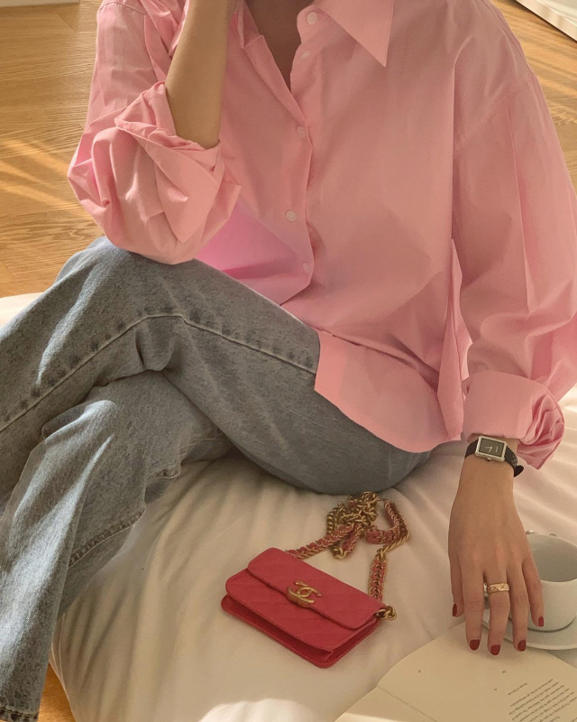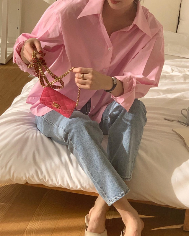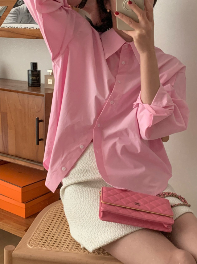 London Race Stan春ピンクオーバーサイズシャツ