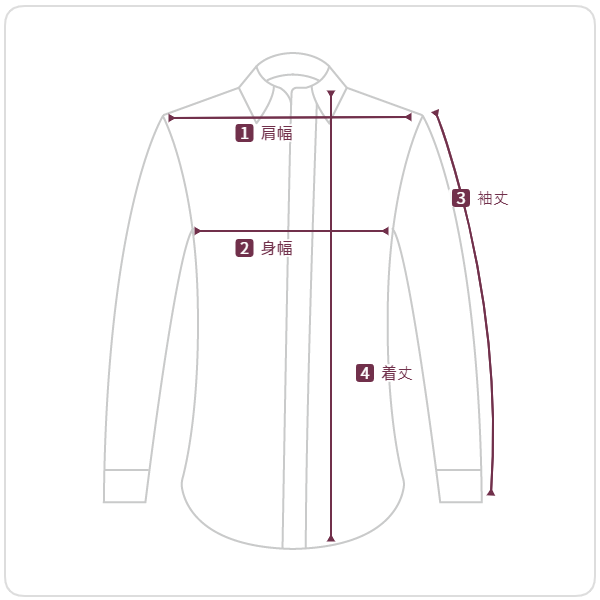 4 着丈 | 73 28.5 | 75 29.5 | 77 30.5 | 79 31 |