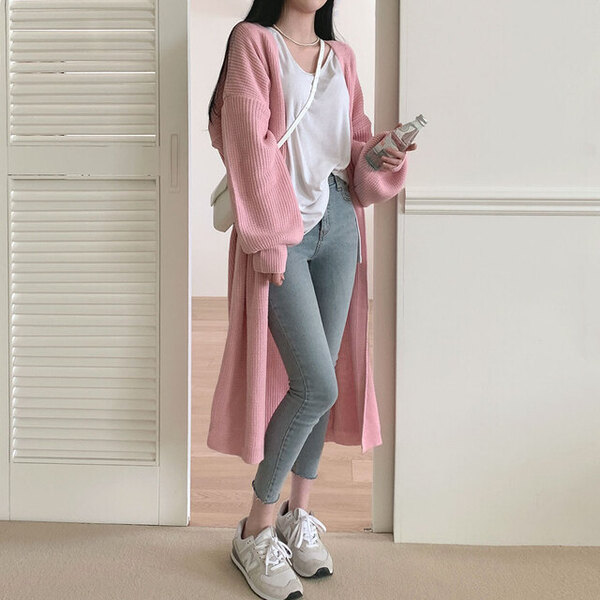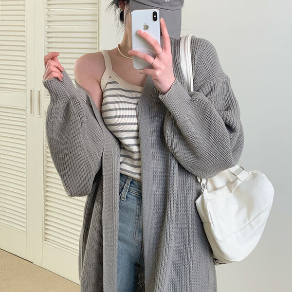 袖のもちしたリブでバルーンスリーブを演出して体型カバーぴったりのカーディガンです:)