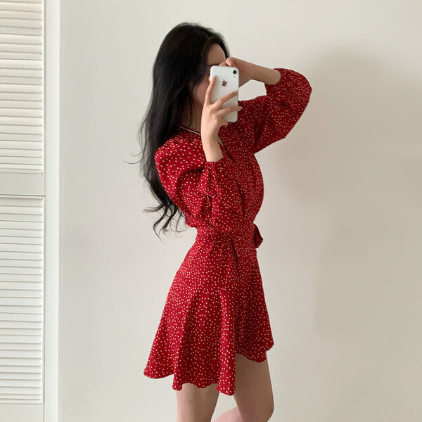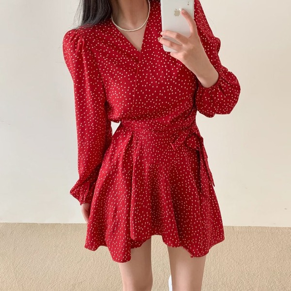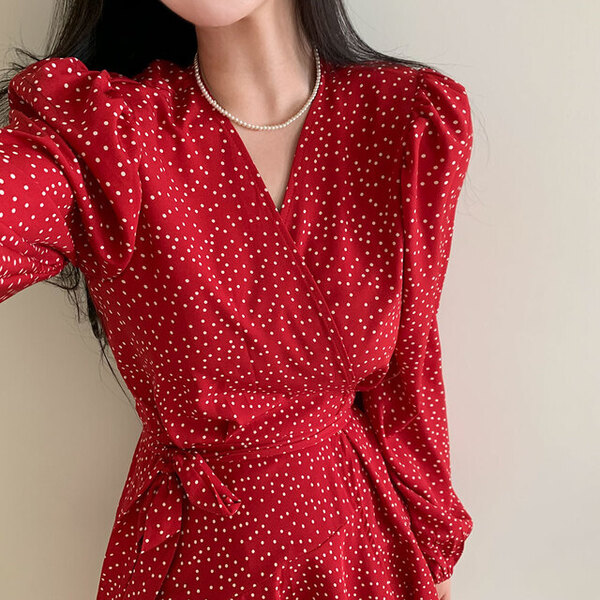 ラップアラウンドスタイルのワンピースで女性らしい雰囲気で