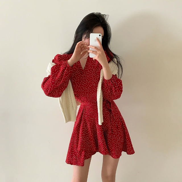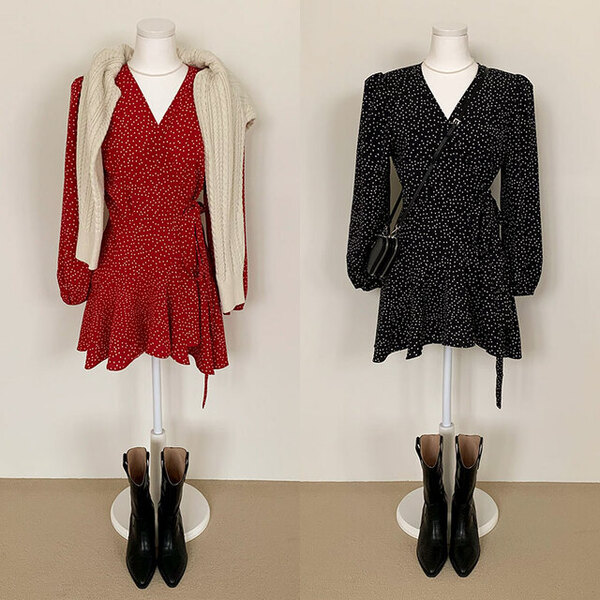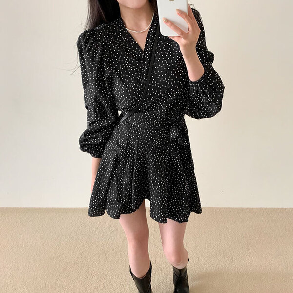 可愛らしいドットパターンで多彩なスタイリングができます。