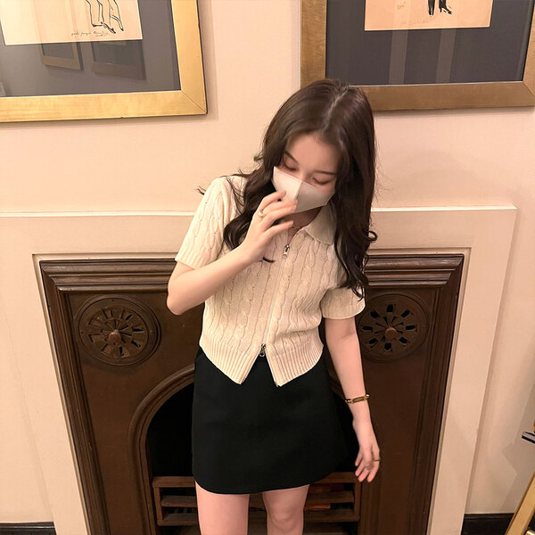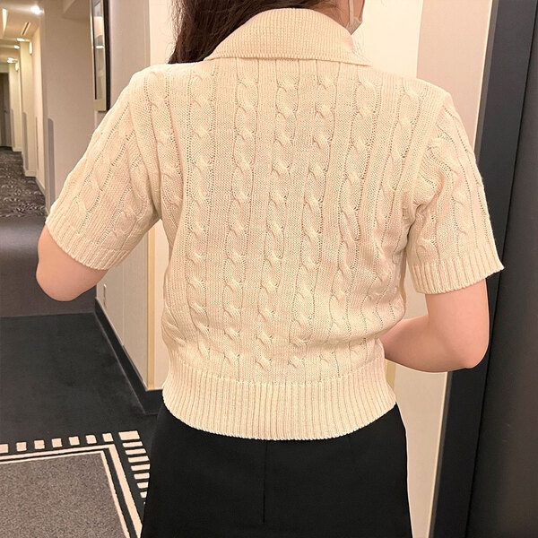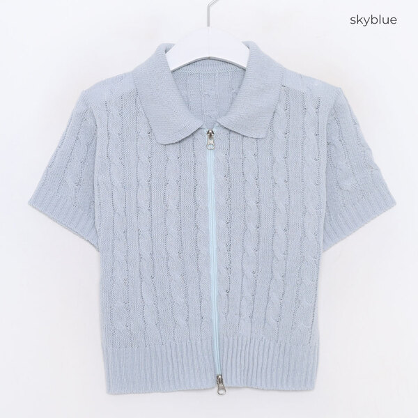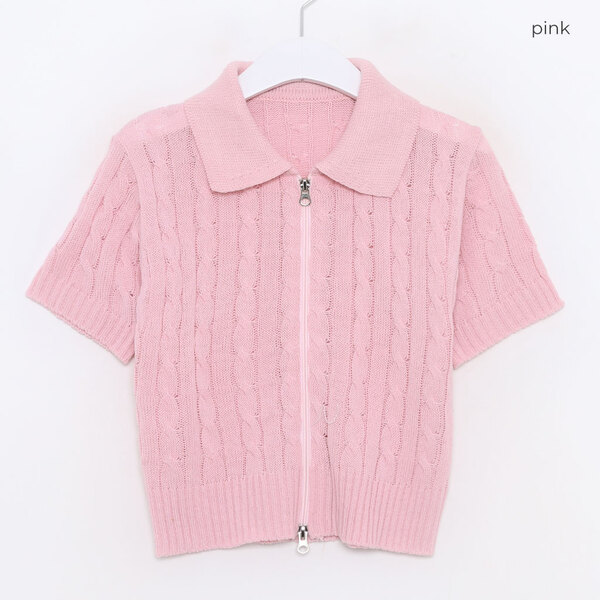 カラーニットジップアップTシャツ
